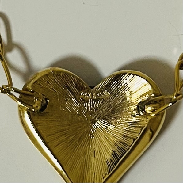 800 アンティーク ビンテージ コスチュームアクセサリー ネックレス 刻印入り 未使用保管品! ゴールドカラー ラインストーン ハート 海外製