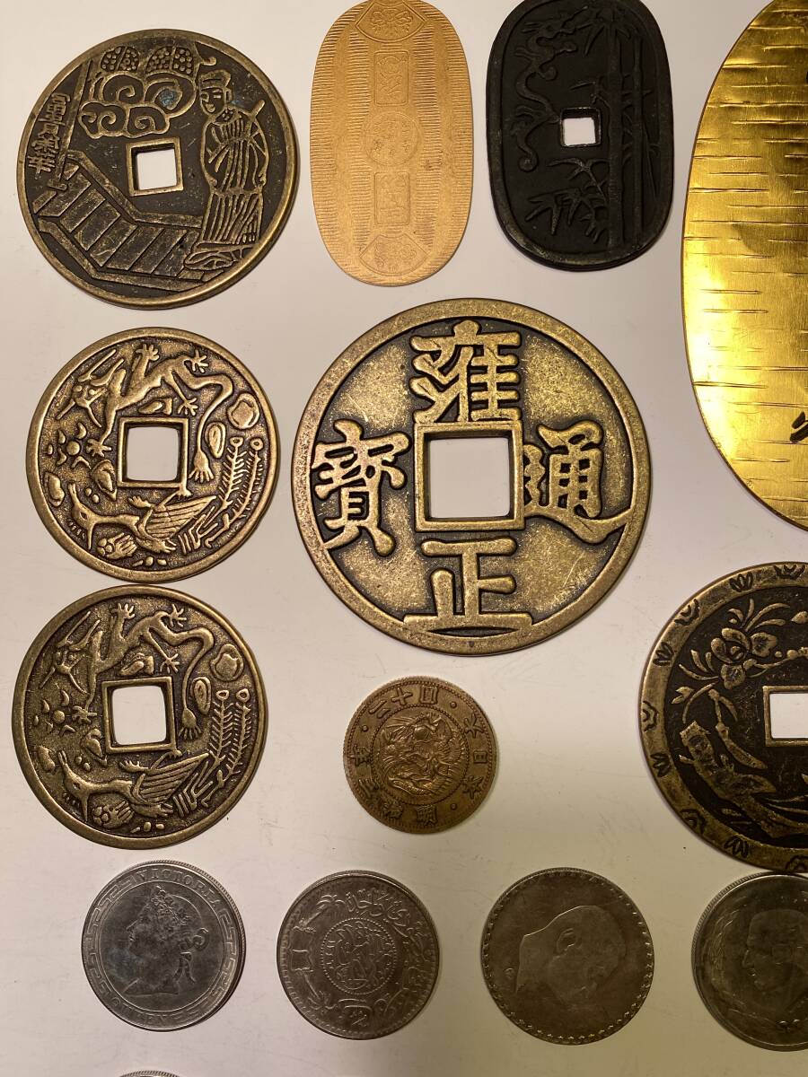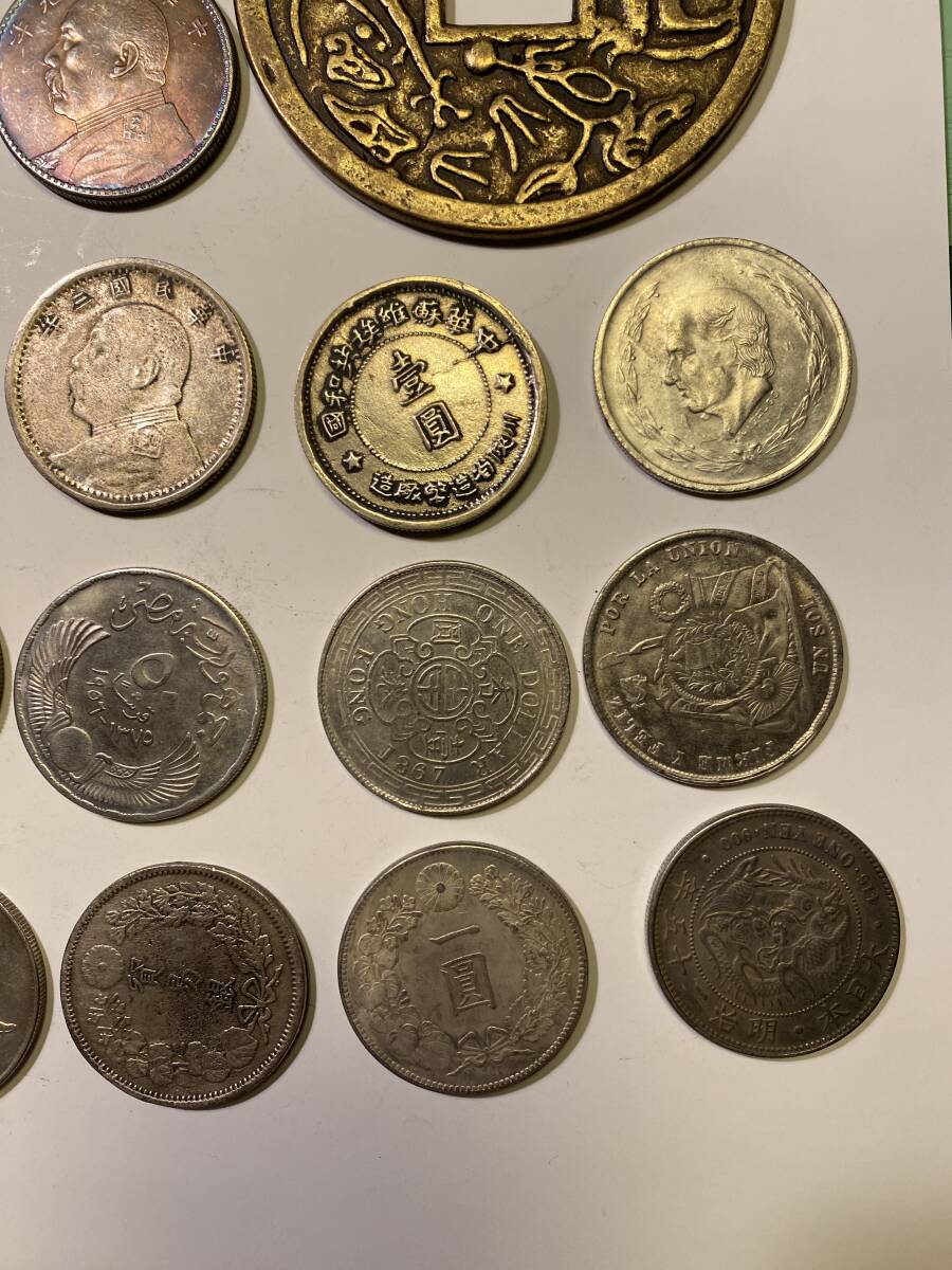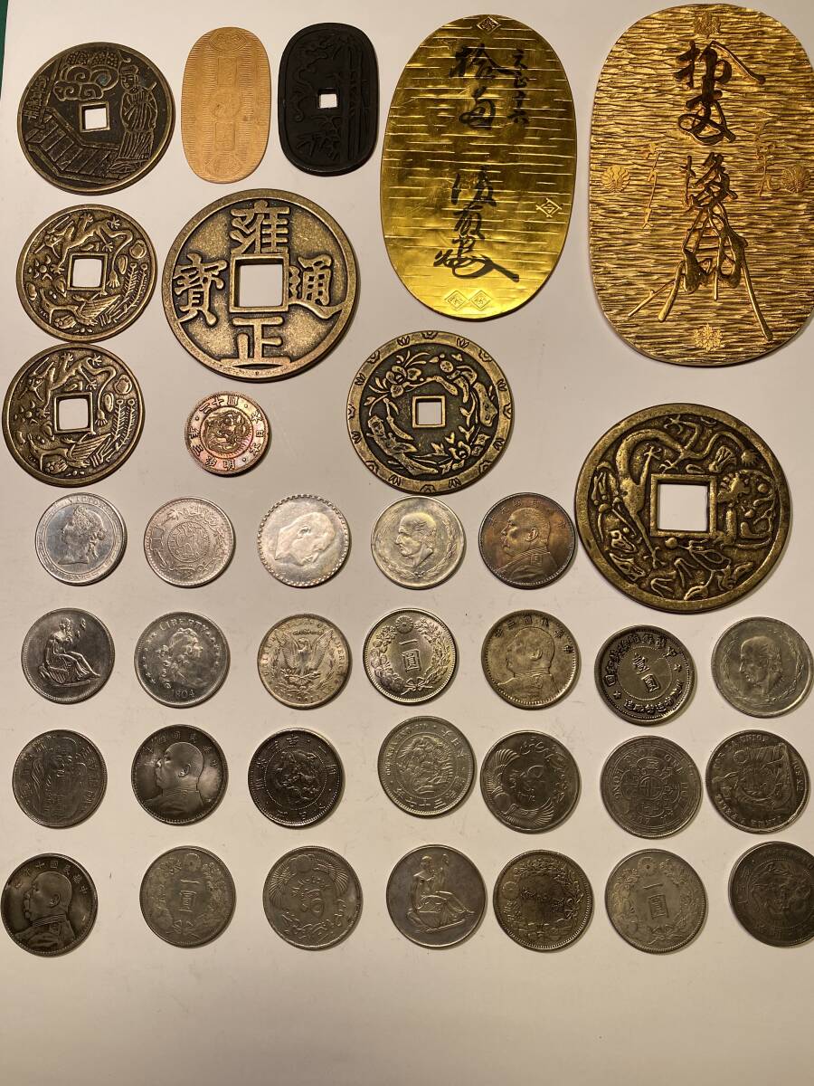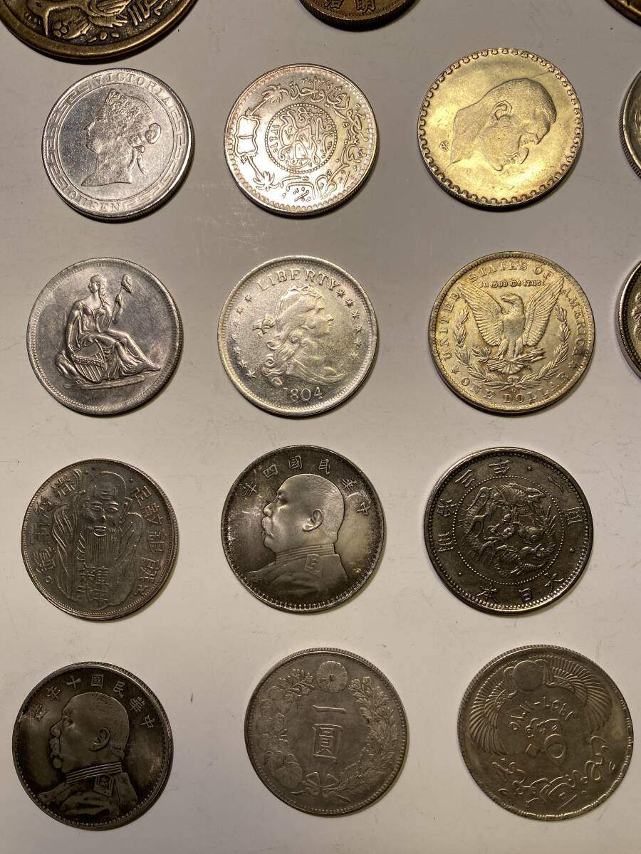 贋作、レプリカ、参考品、大判、小判 銀貨 日本 中国 ヨーロッパ 37点 約1・3キログラム おまとめ 1円銀貨等