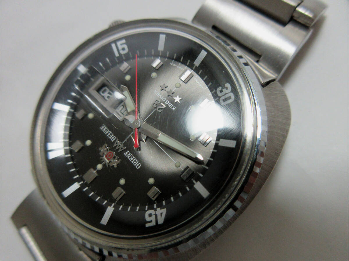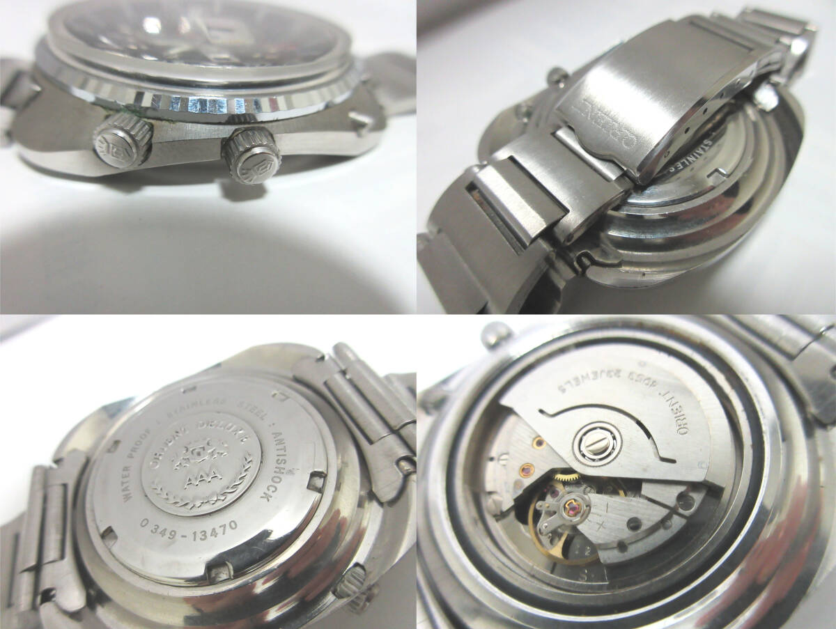 新規の方は、ご購入の意思がある事をお手数ですが質問欄よりご連絡下さい。ない場合は、申し訳ありませんが削除させて頂きます。1970年代製造、径:42mm(リューズ除く)ステンレス製、ラグ幅:22mm。文字盤:オリジナルできれいな方だと思います。風防:プラスティック製、中心付近にいたみあり。ケース:小傷はありますがきれいな方だと思います。機械:23石自動巻き、動作しますが未整備です。腕周り:最大約18cm。古い物ですので現状でお願い致します。こちらも見落としがある事もありますので、あくまでもジャンク扱いでお願い致します。 また、ご入札頂いてる方でマイナス評価が多い等当方の判断で不適切と思われる場合、入札を取り消させて頂きますのでご了承下さい。