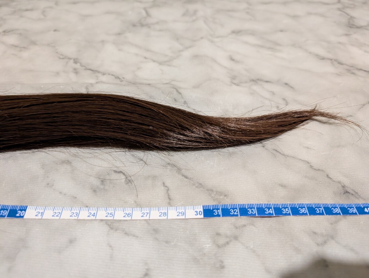 見た目にツヤはあり、パサつきは無いが触ってみるとやや手触りの落ちる部分がある