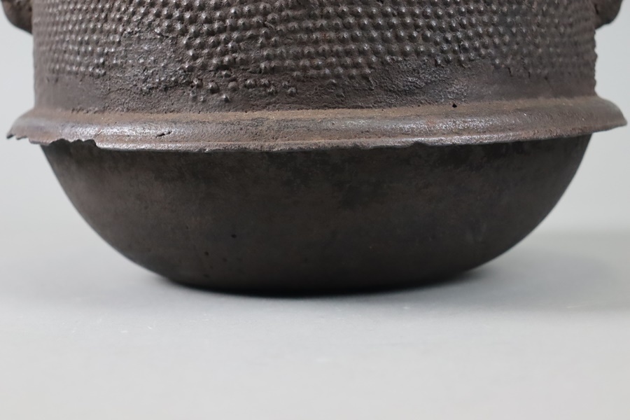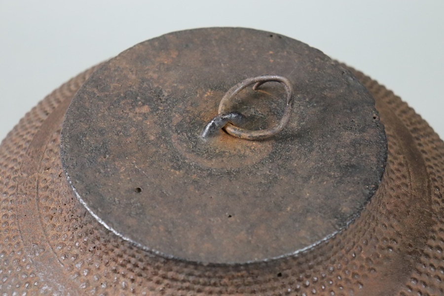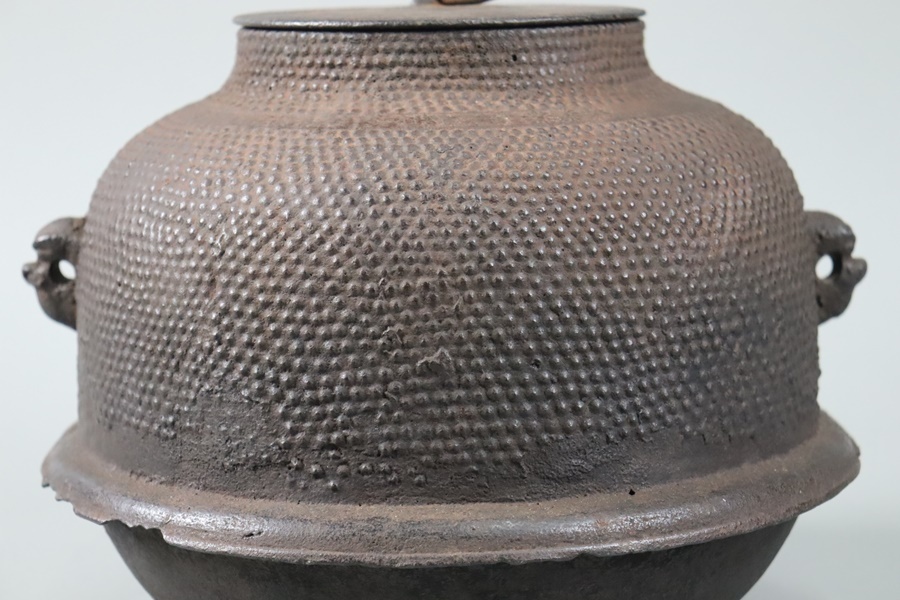 時代 天猫作 霰 真形釜 替蓋付 御釜師 大西清右衛門極書付 箱付 茶道具 細密細工 古美術品[d1292]