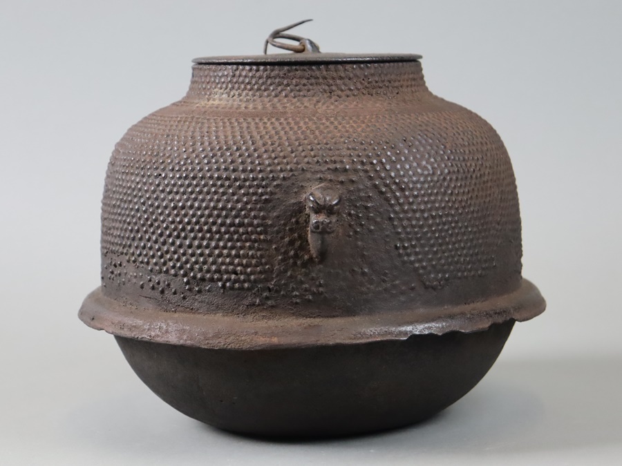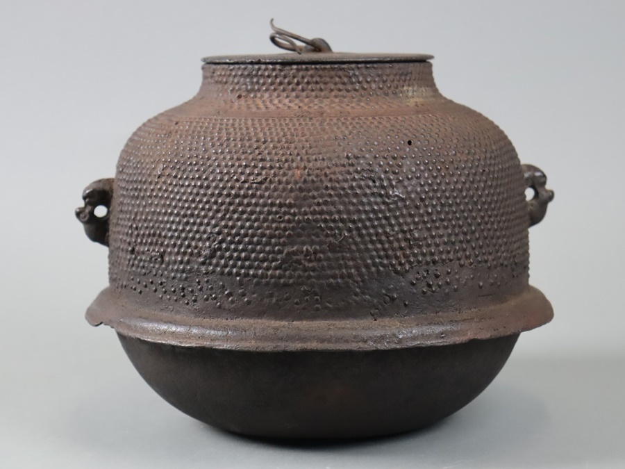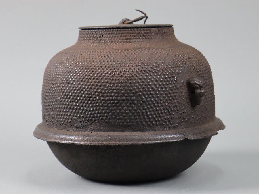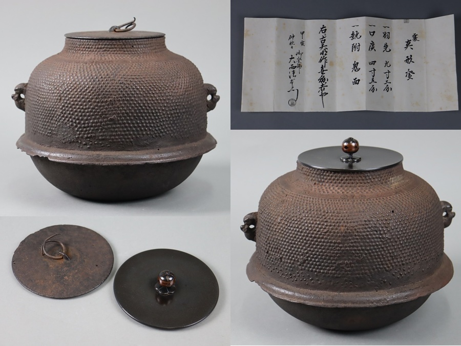 【時代 天猫作 霰 真形釜 替蓋付 御釜師 大西清右衛門極書付 箱付】
