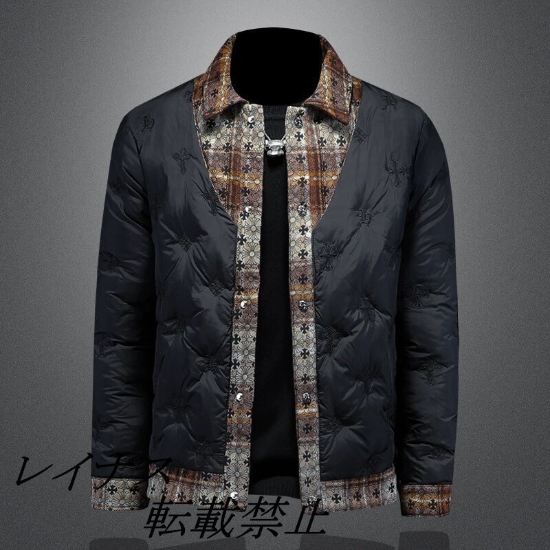 ■商品説明 : エンブロイダリー ダウンジャケット メンズ プリント パッチワーク アウター 厚手