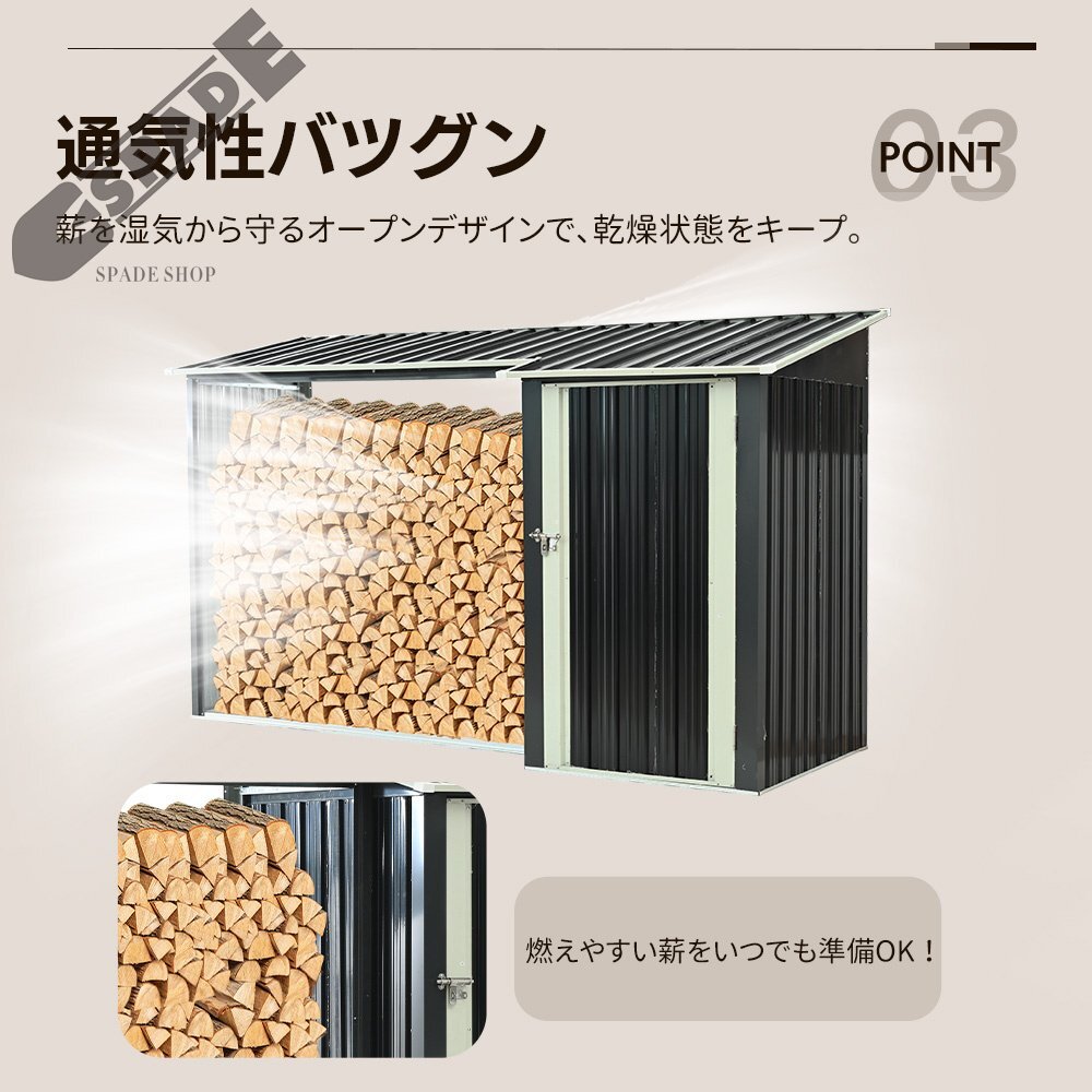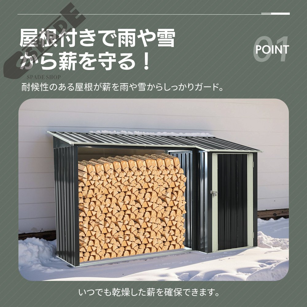 • ◎01薪小屋&収納庫の理想的なセット!一つで二役、すっきり収納で快適空間を実現!屋根付きで雨や雪から薪を守る!耐候性のある屋根が薪を雨や雪からしっかりガード。いつでも乾燥した薪を確保できます。