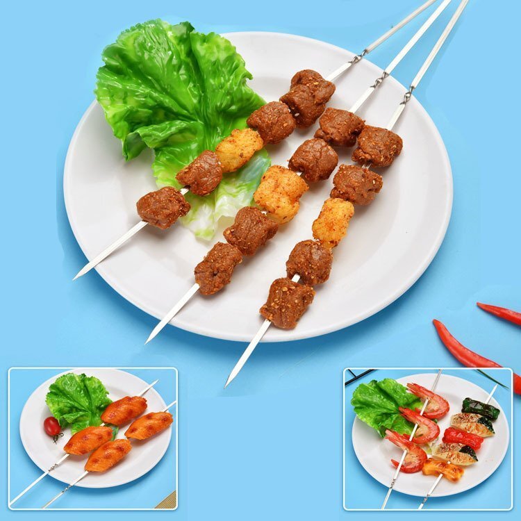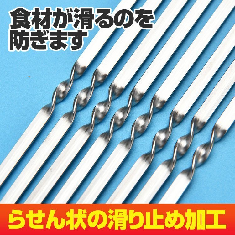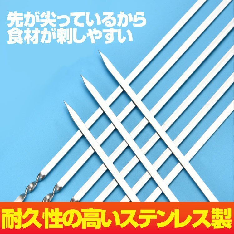 ◆バーベキュー串 10本セット ステンレス製 折れにくい 錆びに強い 刺しやすい 焼き串 スキュアー BBQツール バーベキュー用品 アウトドア キャンプ ピクニック道具 BBQKS10S