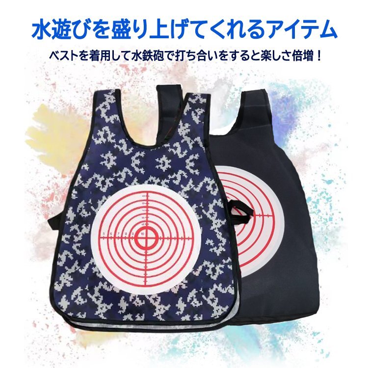 ◆ターゲットベスト 速乾 的当て 水遊び 対戦ゲーム 水で色が変わる ウォーターグッズ 水鉄砲 屋外ゲーム プール遊び ビーチ サバゲー 水遊び盛り上げ 着脱が簡単【ブラック】TABT5440