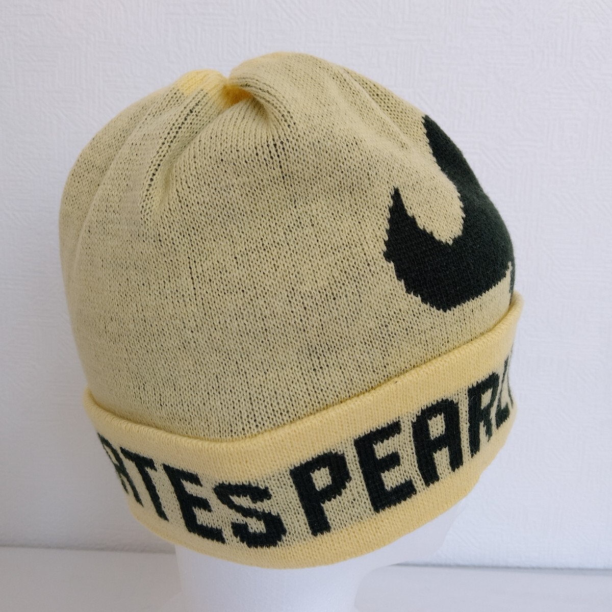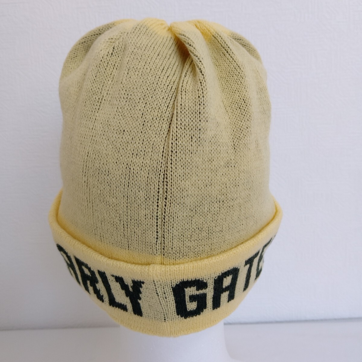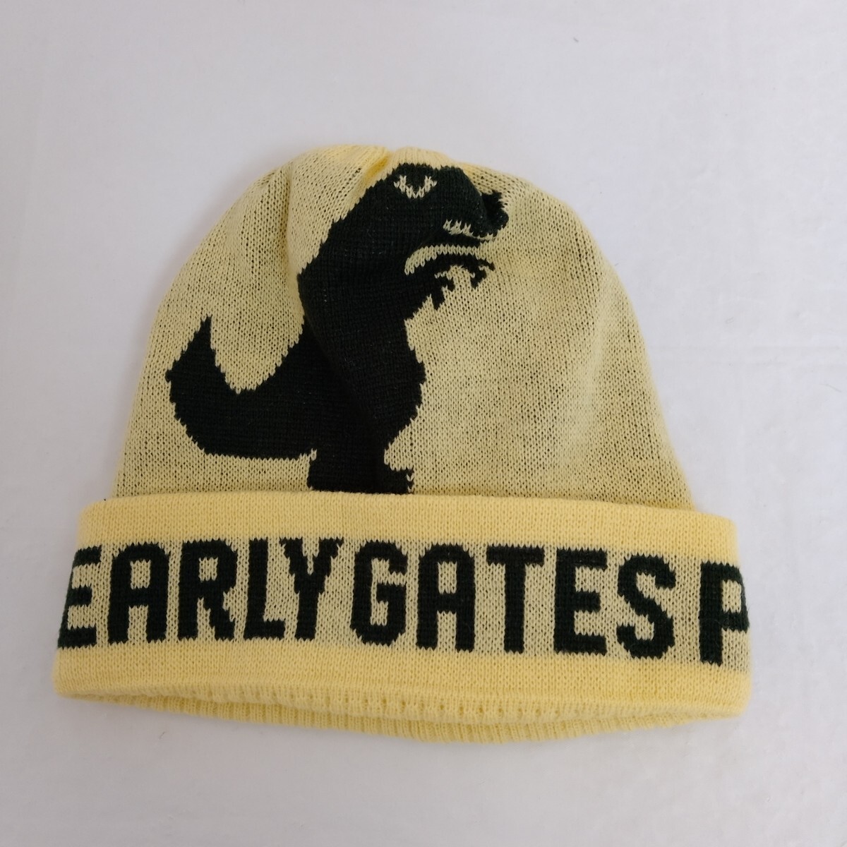 ※PEARLY GATES恐竜のシルエットが特徴的なイエローニット帽。
