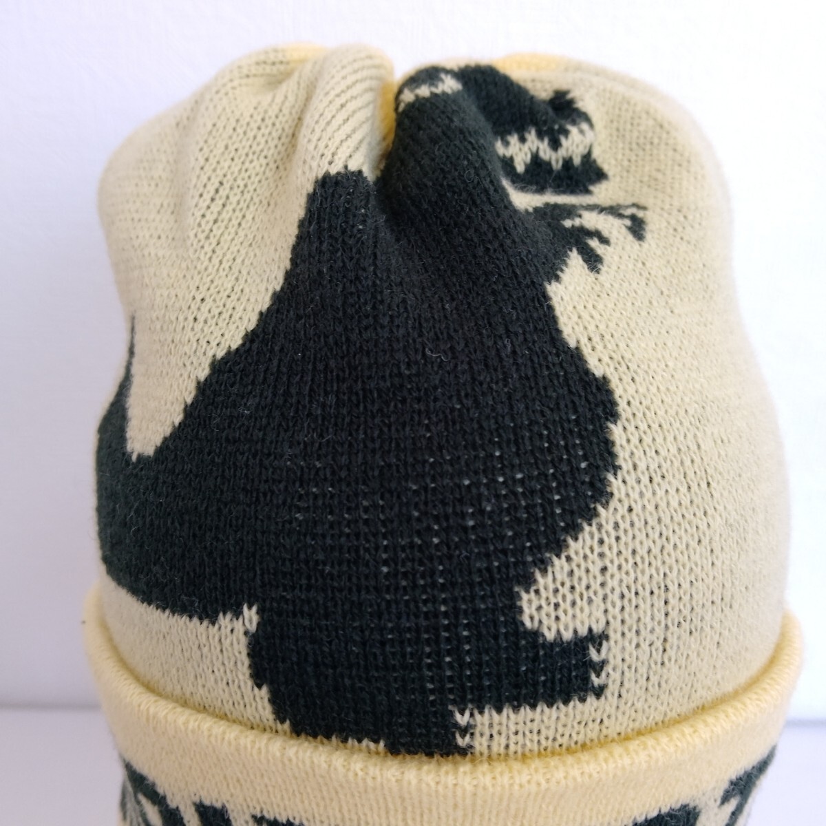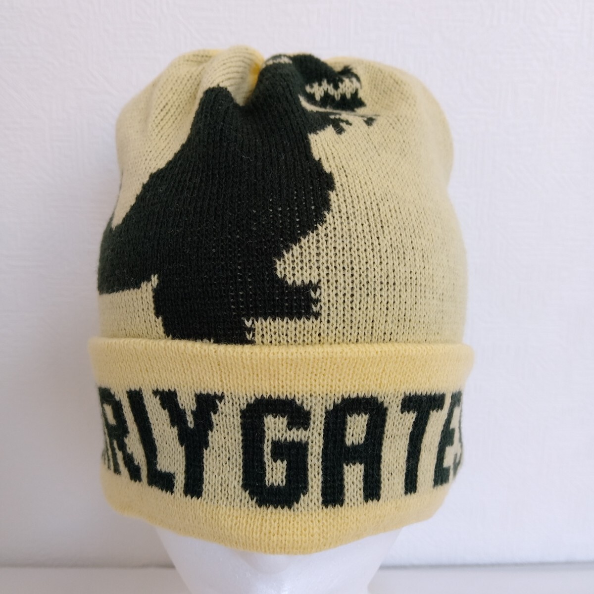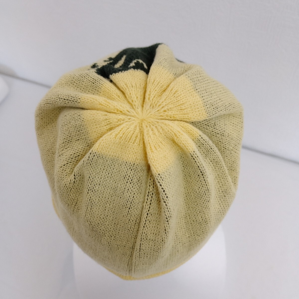 ※PEARLY GATES恐竜のシルエットが特徴的なイエローニット帽。