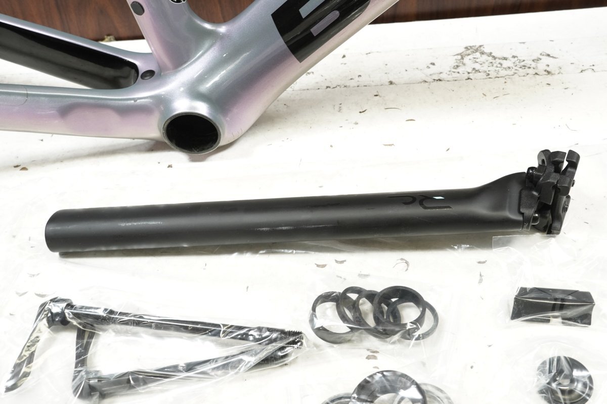 | 仕様 | 年式:2021 フレーム:カーボン フォーク:カーボン BB:プレスフィット86 BB FDマウント:直付け シートポスト:専用 コラム径:OS コラム長:205mm OLD:100x12mm/142x12mm thru axle サイズ:53 トップチューブ長(C-C):535mm ※ホリゾンタル換算値 シートチューブ長(C-T):500mm ヘッドチューブ長:125mm 適応身長:168cm~175cm 程度 実測重量(フレーム):1,150g 実測重量(フォーク):440g ※掲載画像状態 |