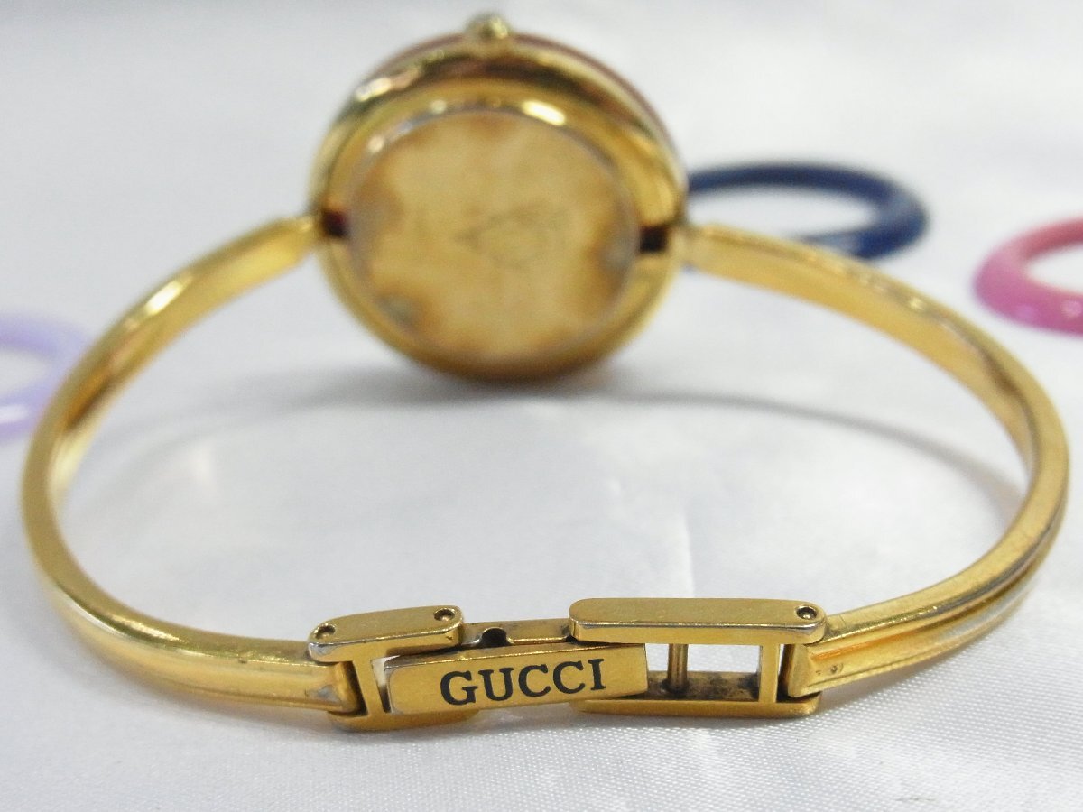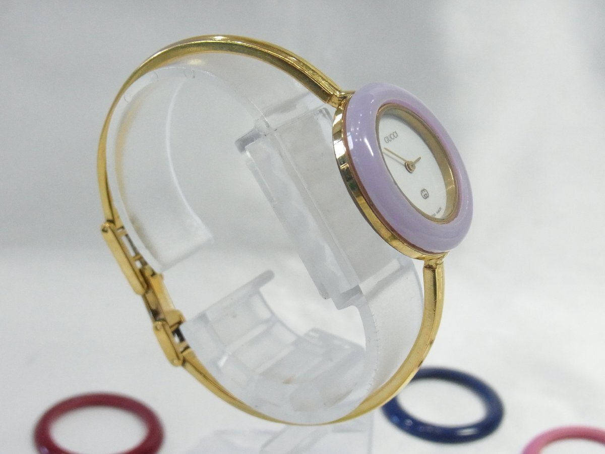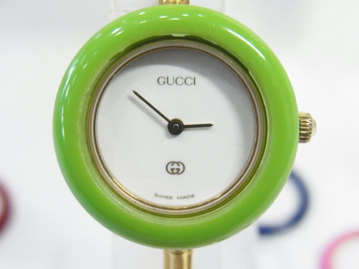 | 1円~【稼働・社外ベゼル】グッチ GUCCI チェンジベゼル11種 1100-L 6石 Cal.978.002 ドレスウォッチ レディース 腕時計 クオーツ 2針 ラウンド SSxGP 本体ゴールド 文字盤ホワイト系 純正ベルト | |