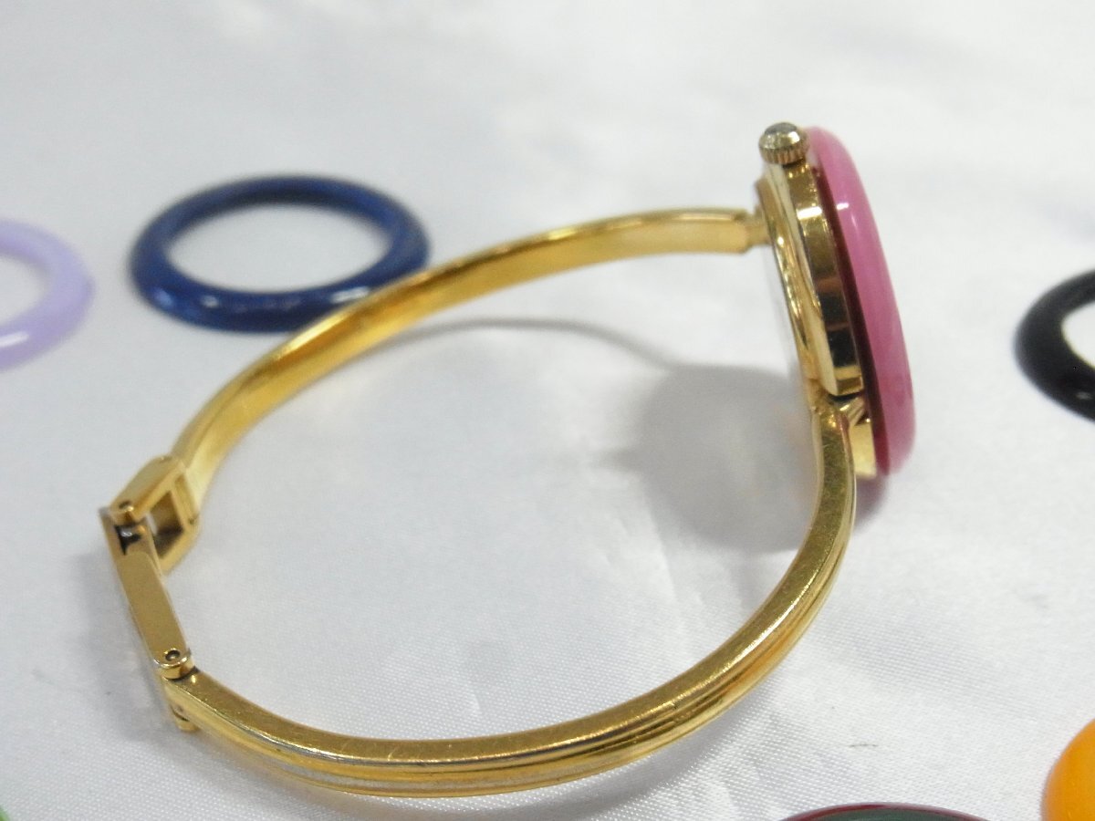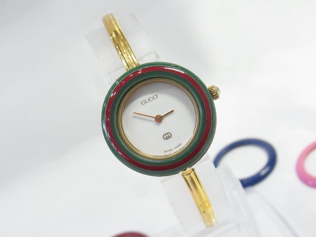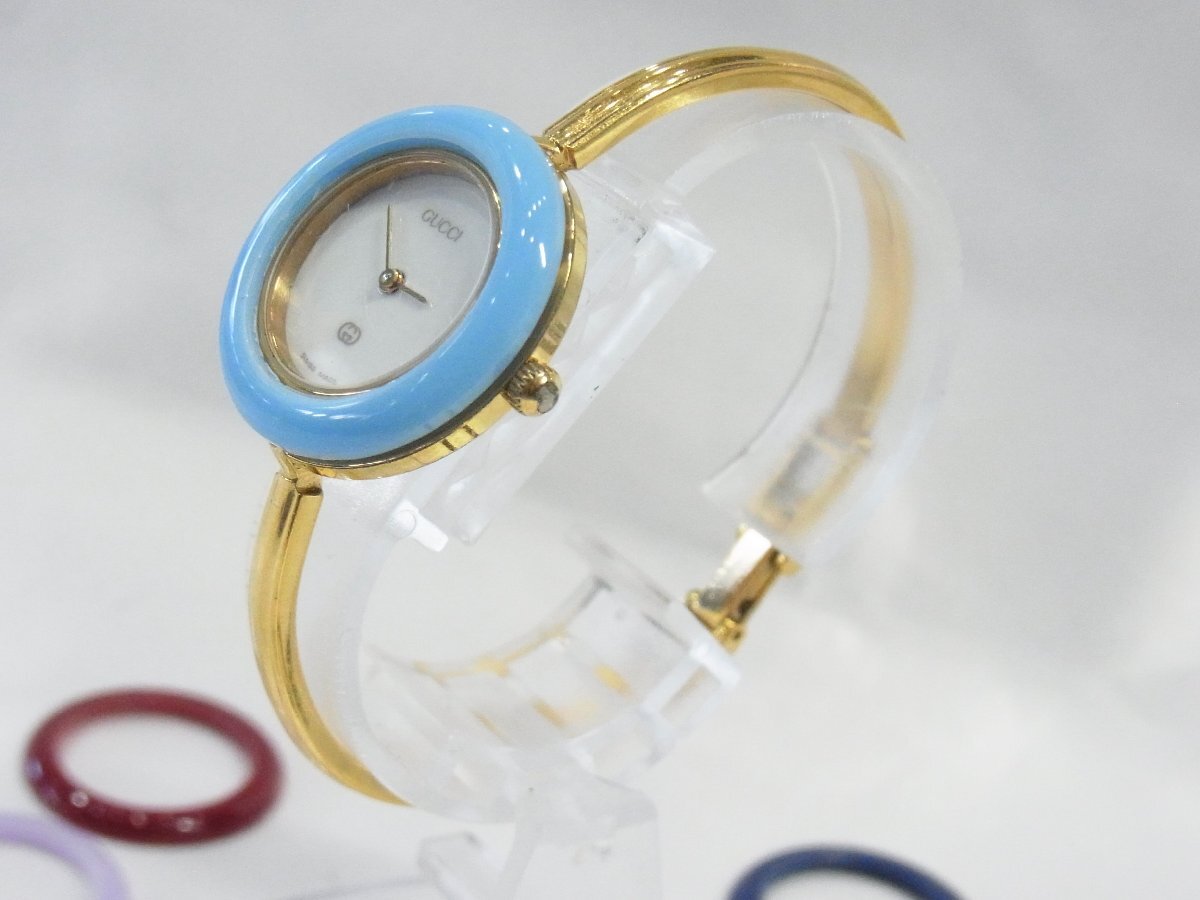 | 1円~【稼働・社外ベゼル】グッチ GUCCI チェンジベゼル11種 1100-L 6石 Cal.978.002 ドレスウォッチ レディース 腕時計 クオーツ 2針 ラウンド SSxGP 本体ゴールド 文字盤ホワイト系 純正ベルト | |