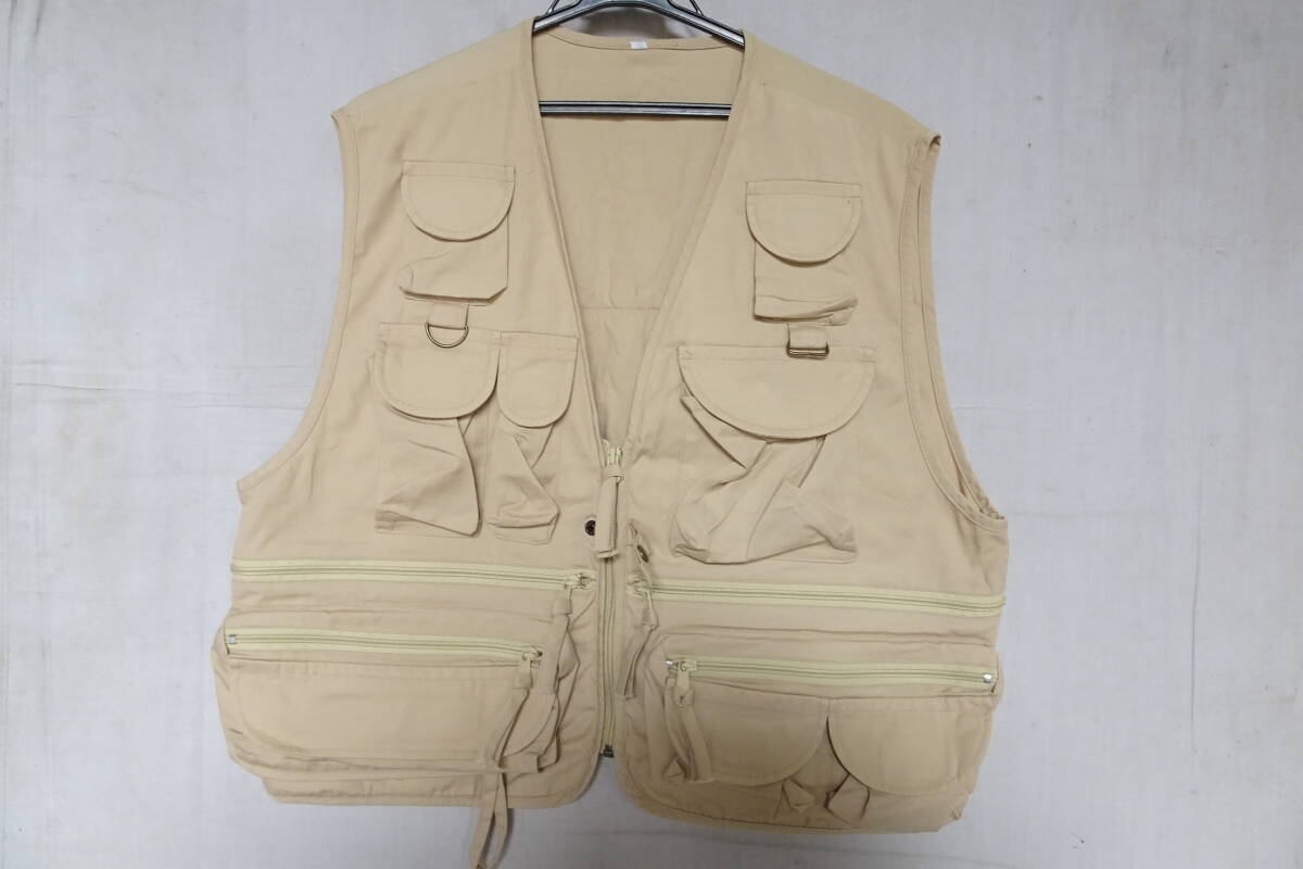 BASTET/バステト/アウトドアベスト/Vネック/前ジップアップ/前身頃多機能ポケット/後身ポケット/ベージュ/Oサイズ(11/27R7)