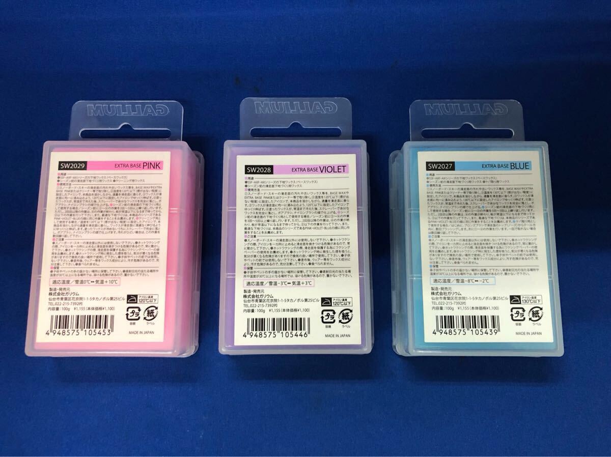 GALLIUM ガリウム スノーボード スキー ワックス EXTRA BASE エクストラベースワックス ピンク バイオレット ブルー 3種セットです。