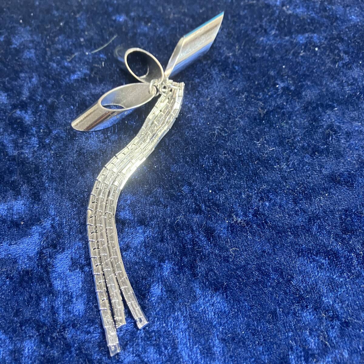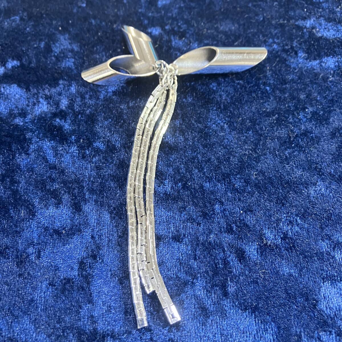 【一点もの】 モダンデザイン リボン/蝶モチーフ スネークチェーン ブローチ シルバーカラー 中古 良品