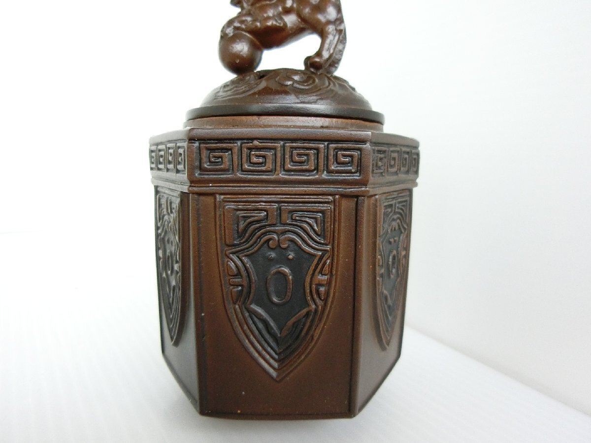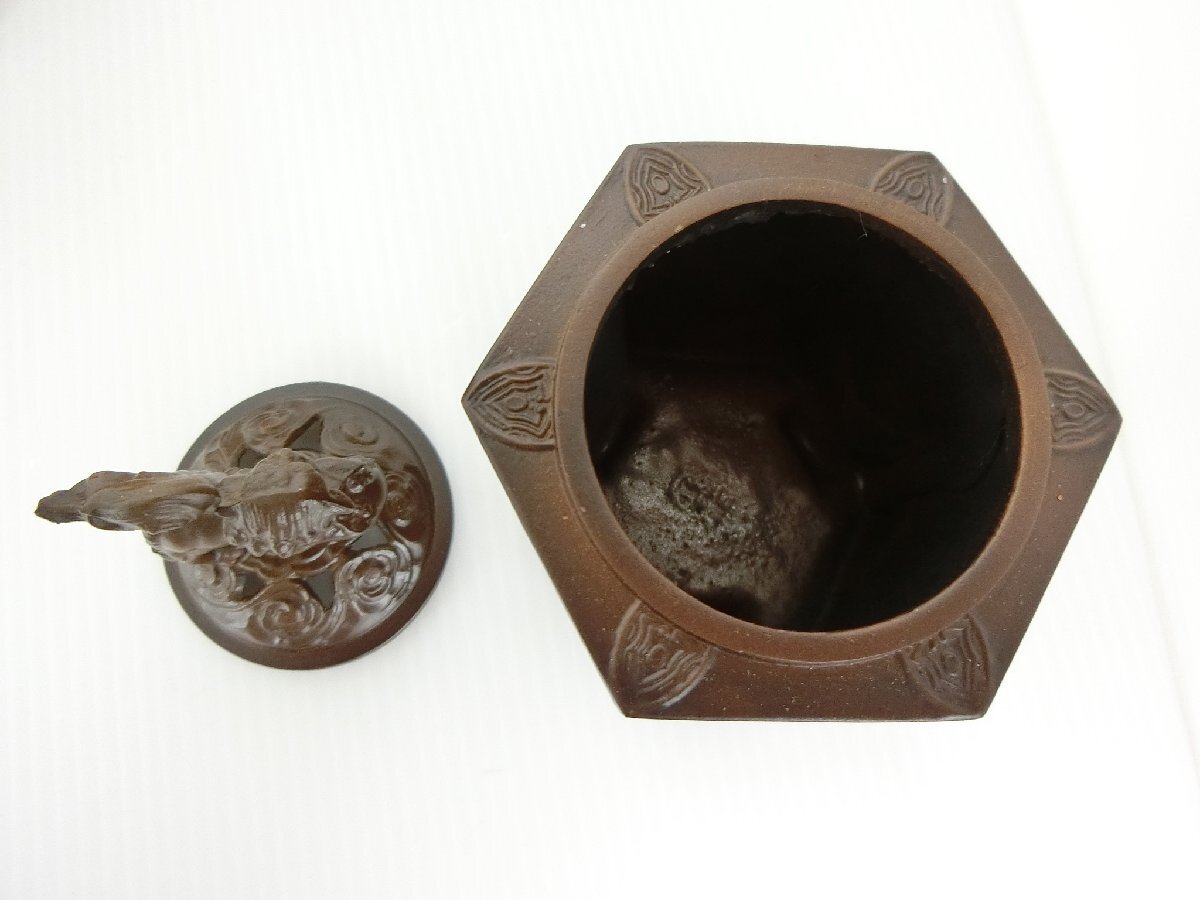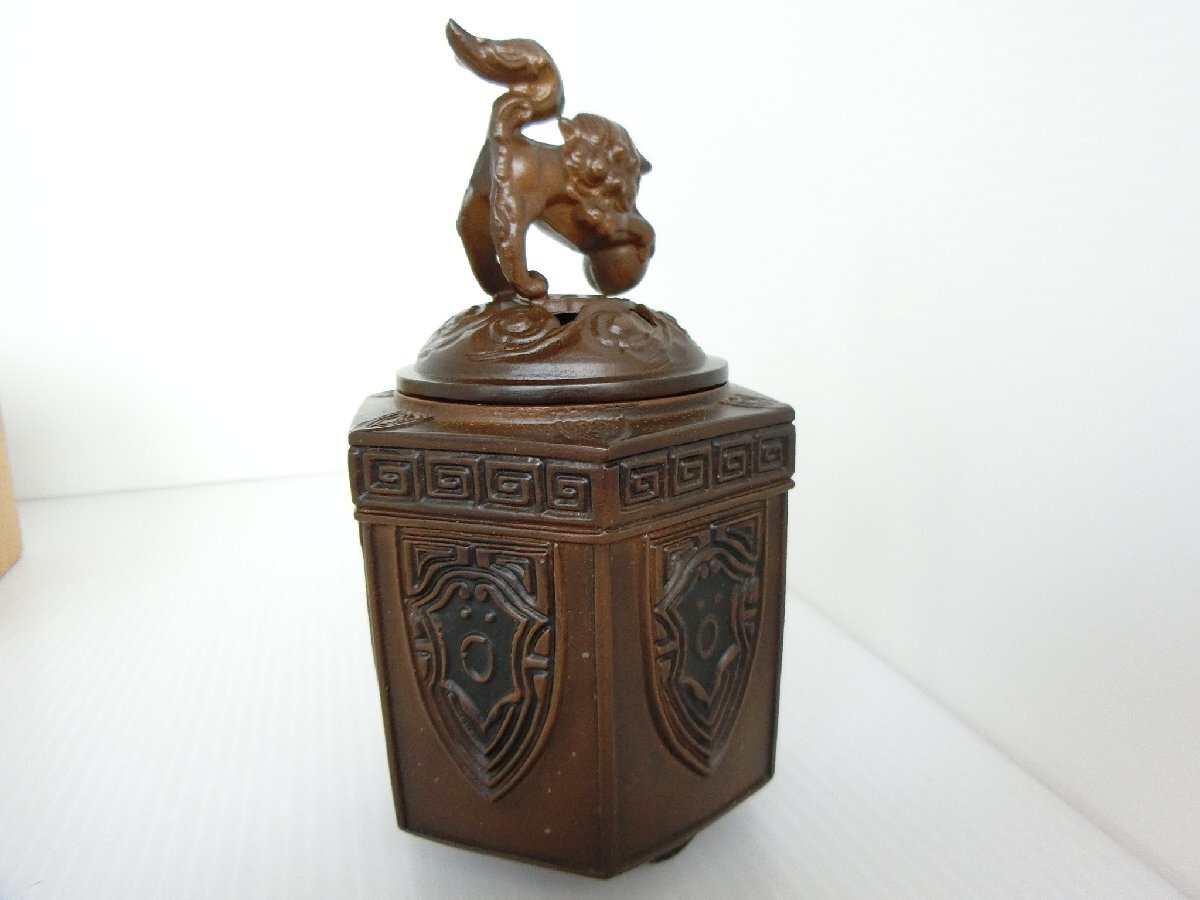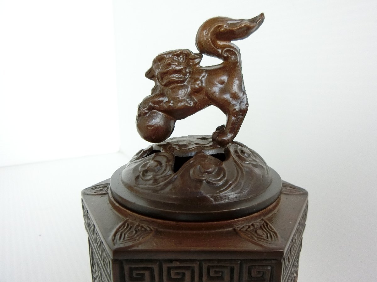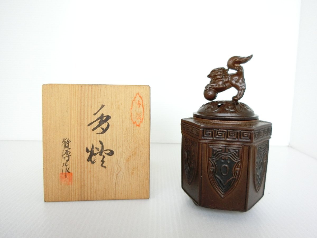 ●特選 高岡銅器 香炉 雅博作 銅製 共箱 金属工芸 獅子 六角 長柄雅博