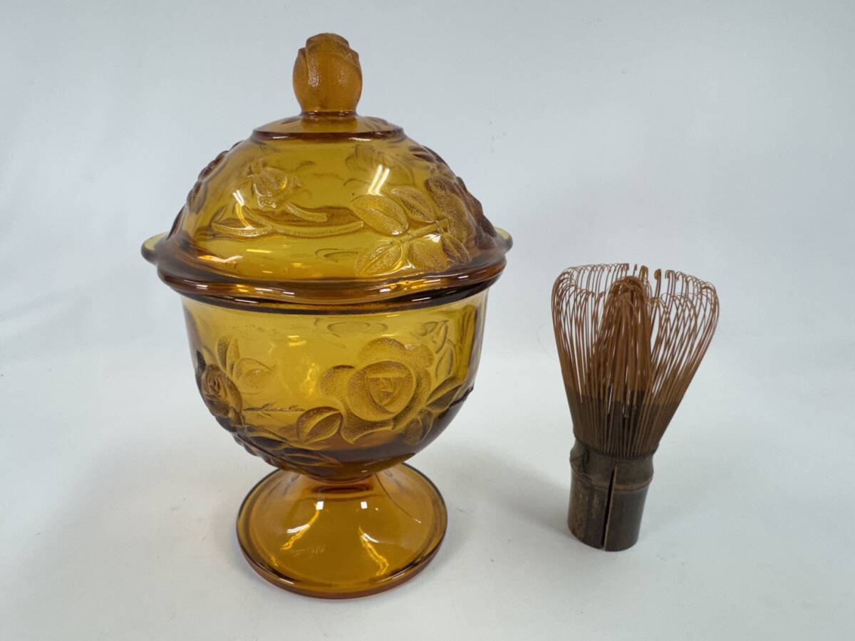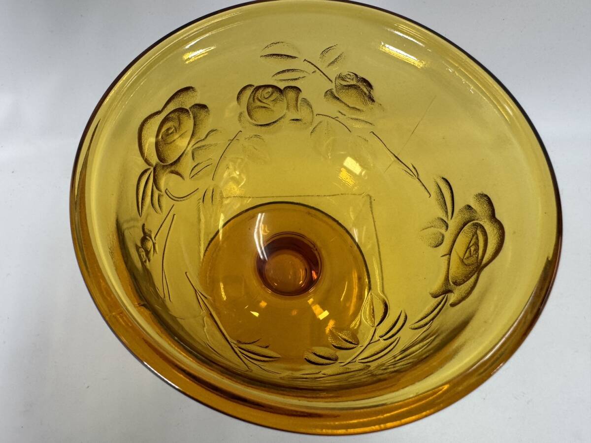 | ◆商 品 名◆ | 【超美品】 昭和レトロ 琥珀色 キャンディポット 工芸ガラス 花模様 小物入れ 蓋付 ヴィンテージ 琥珀 ガラス |