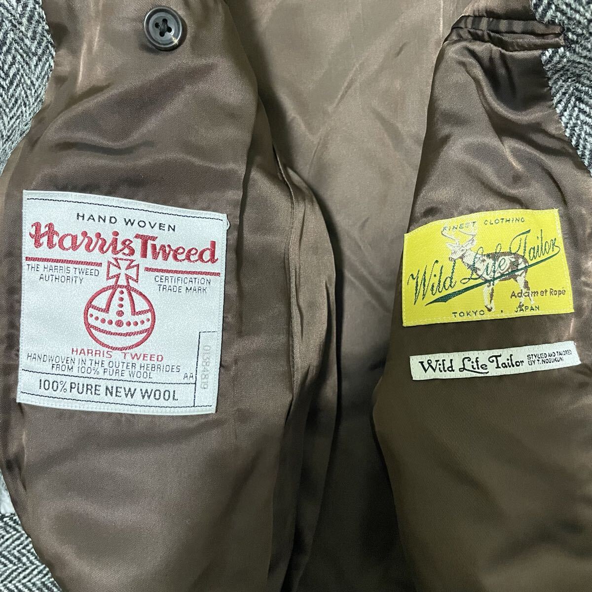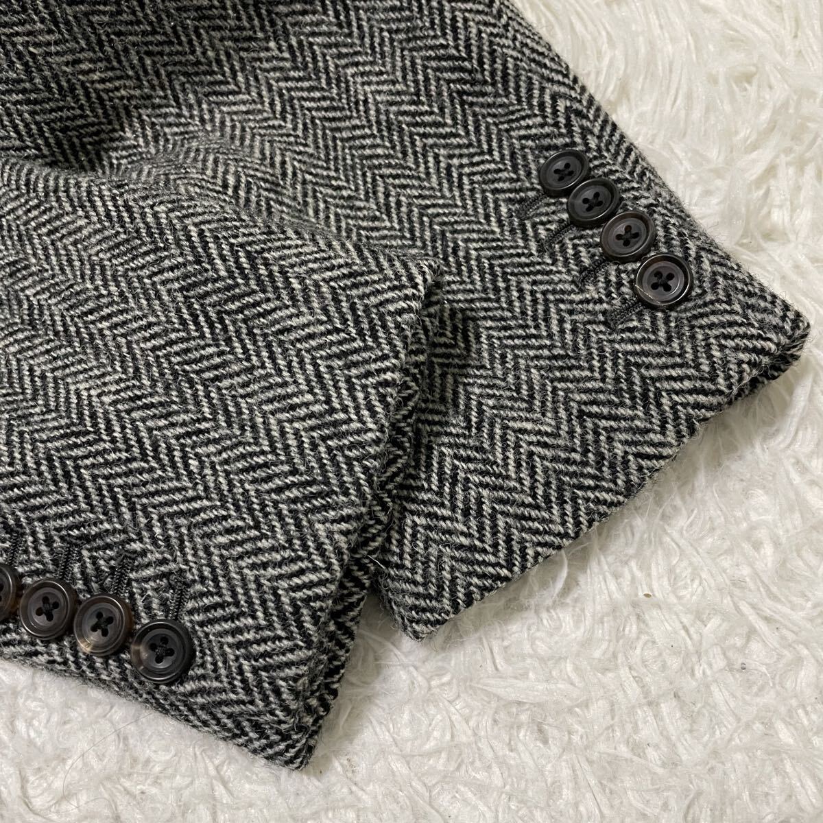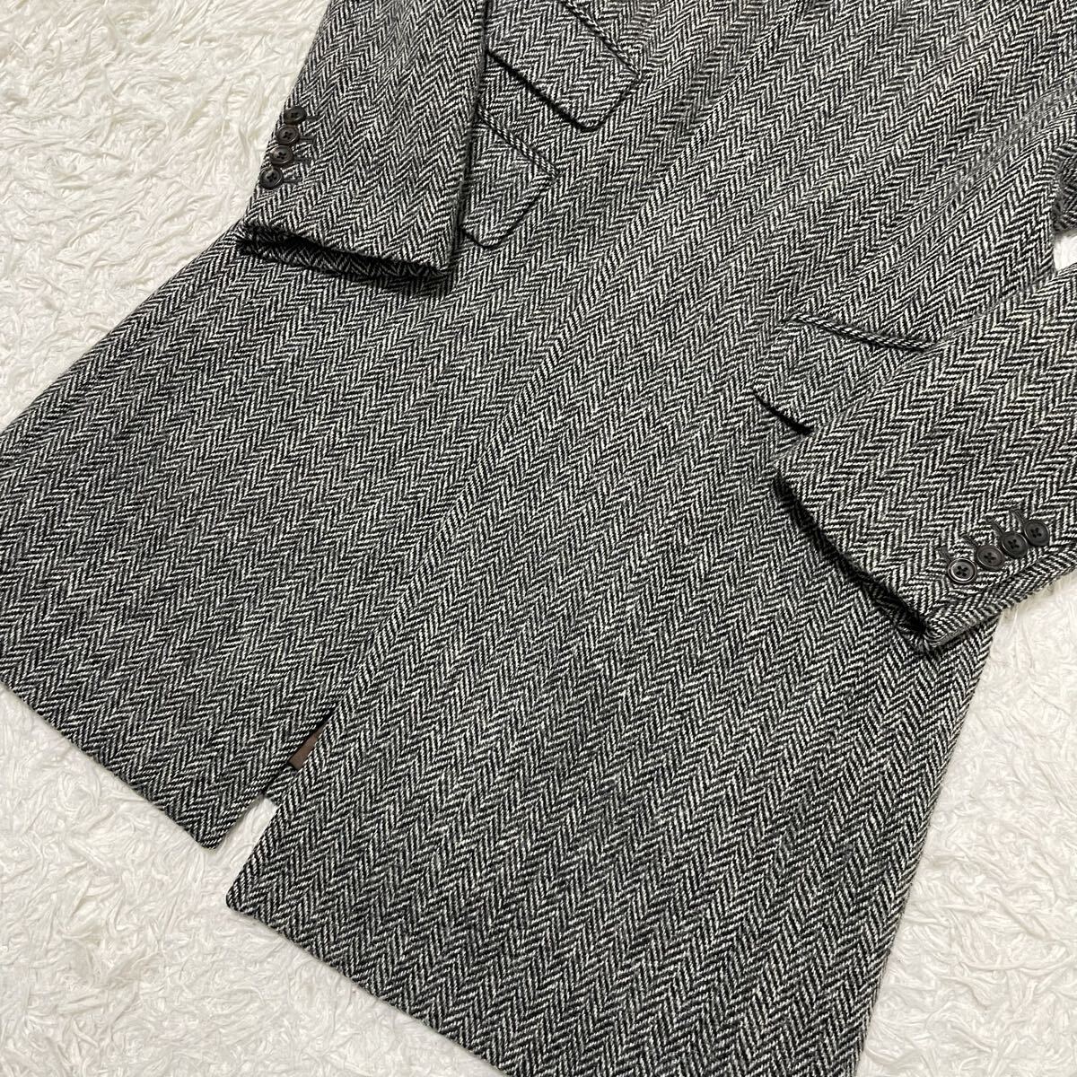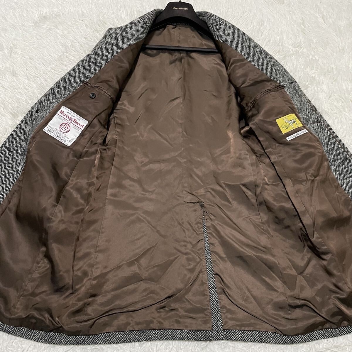 ハリスツイード【圧倒的王者の風格】チェスターコート ヘリンボーン柄 グレー系 ロングコート M-Lサイズ相当 比翼仕立て 肉厚ウール 美品