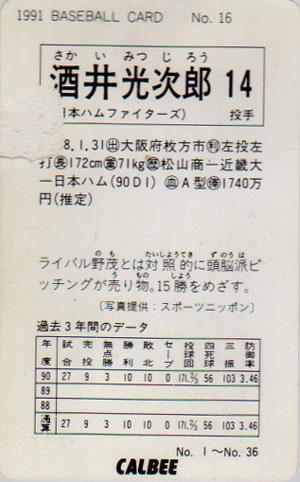 ★トレーディングカード★1991カルビープロ野球チップス【#016 酒井光次郎】★