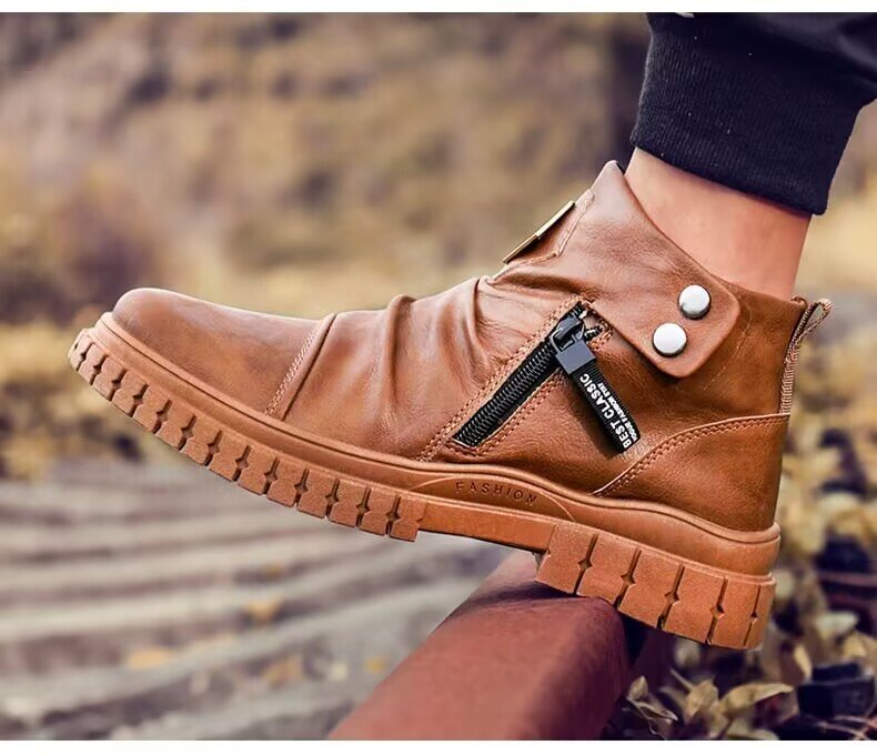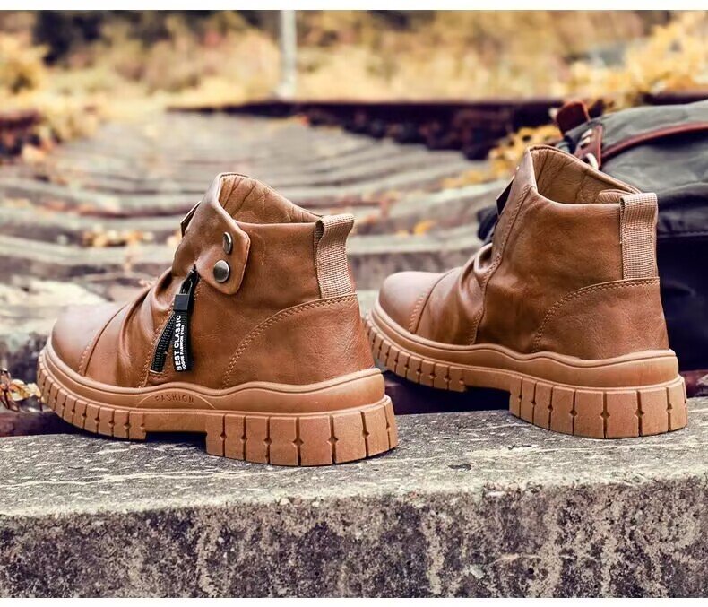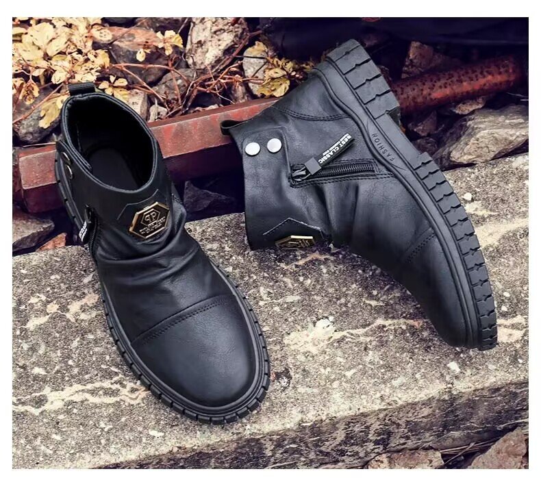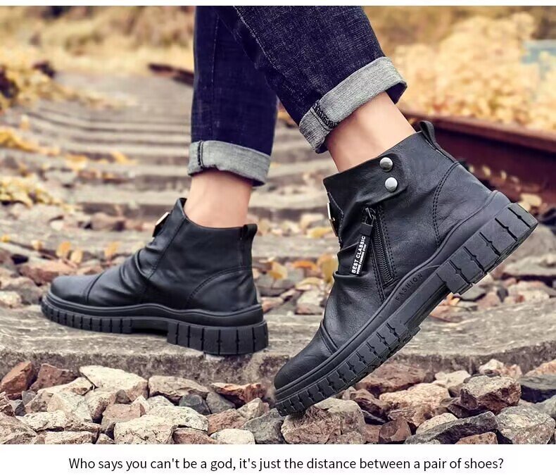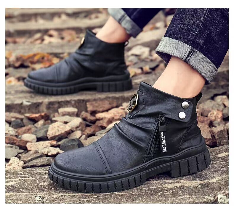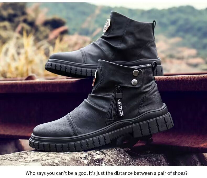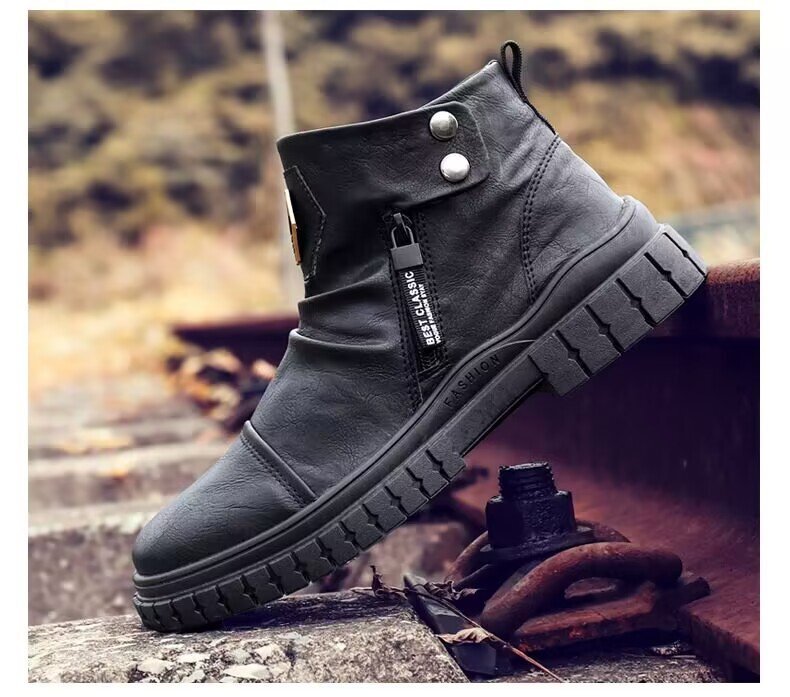 XX-C03- 黒 / 43サイズ26.5cm程度 ショートブーツ メンズ ワークブーツ 革靴 バイクウェア アウトドア 防滑 カジュア
