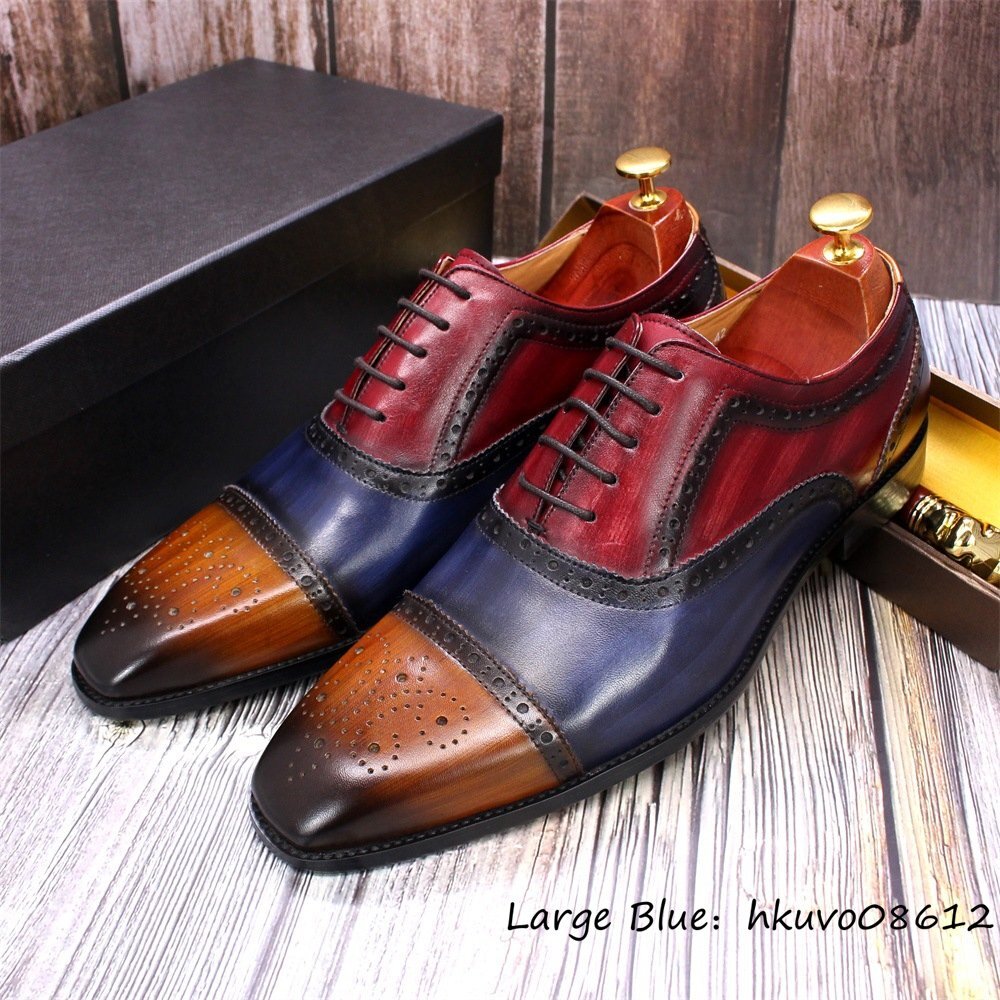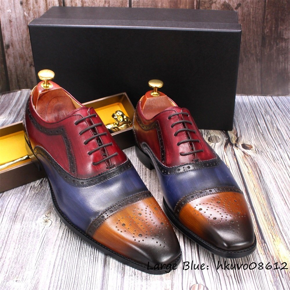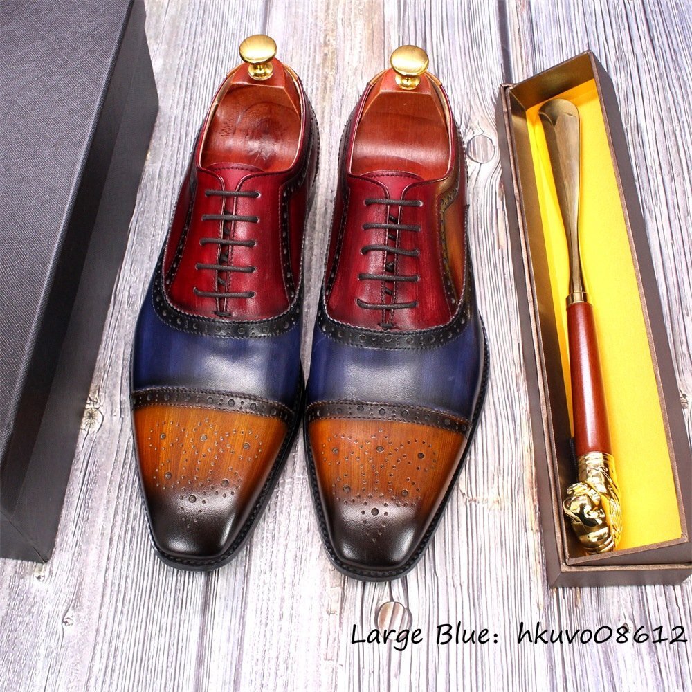 超希少★ビジネスシューズ 本革 メンズ 最高級 職人手作り レザーシューズ 切替 個性 高級牛革 紳士靴 フォーマル 革靴 ブルー 27.5cm
