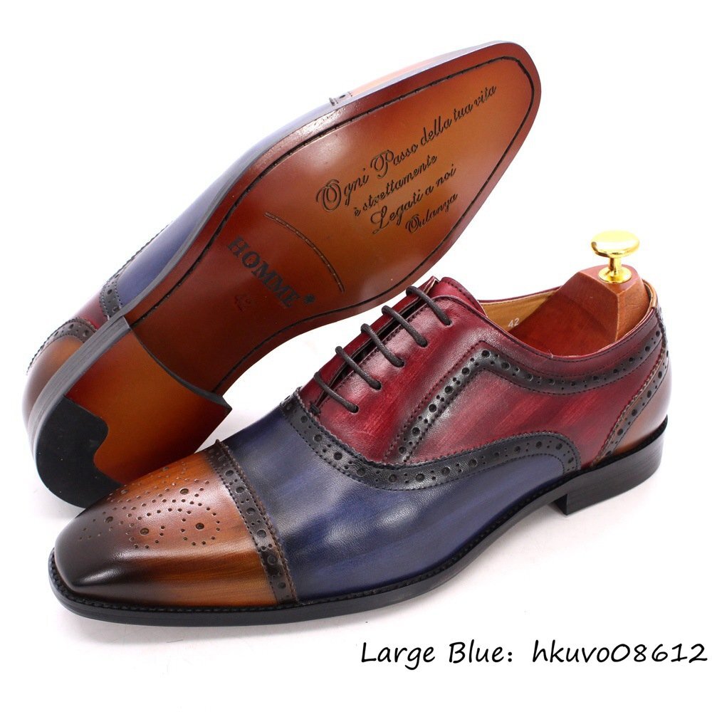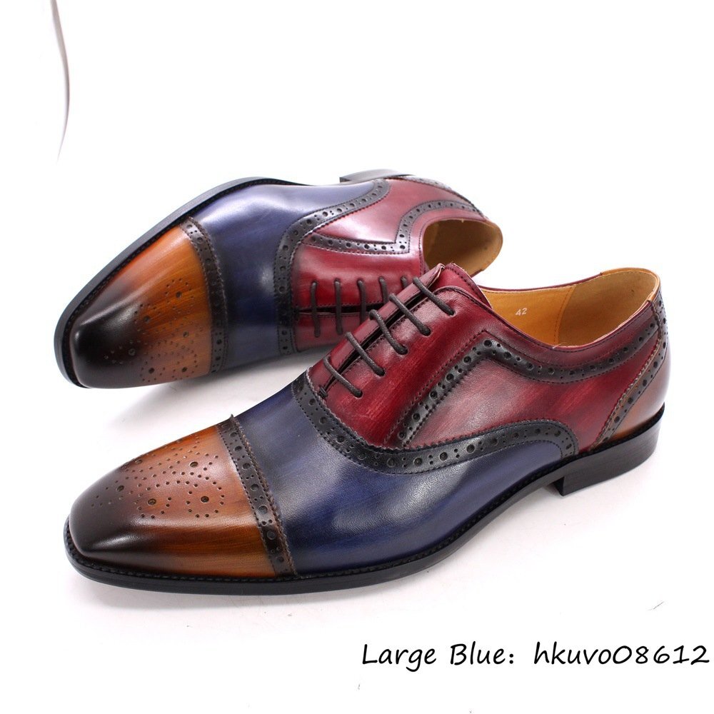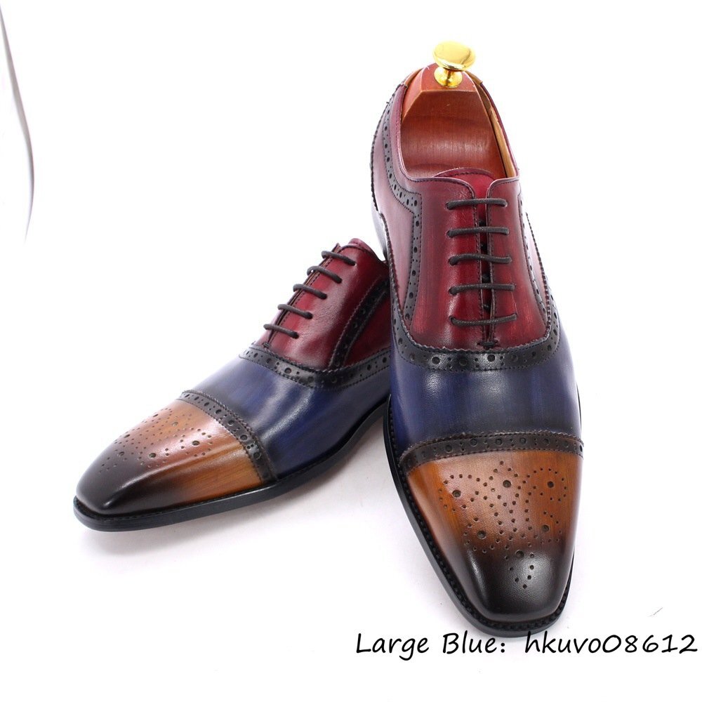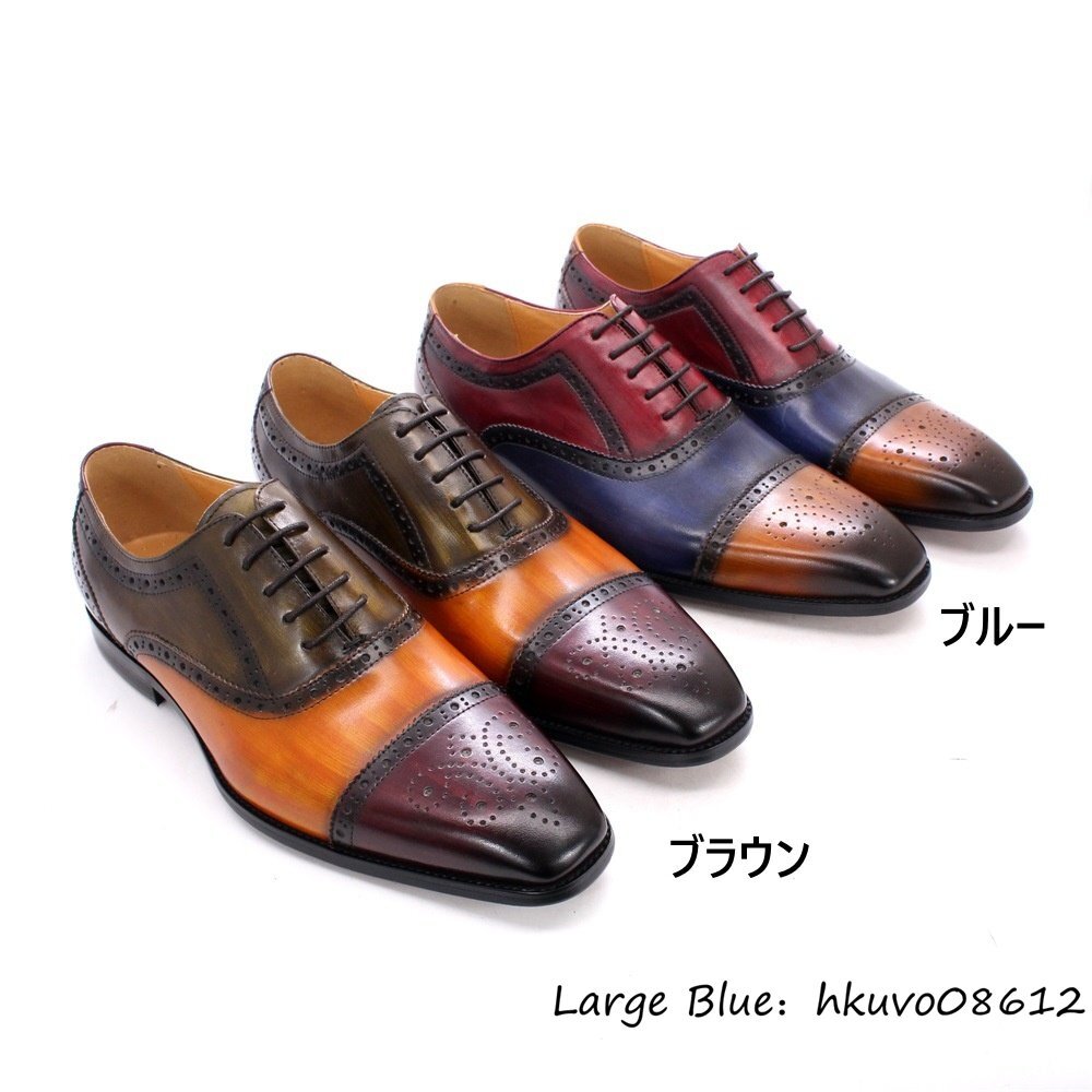 超希少★ビジネスシューズ 本革 メンズ 最高級 職人手作り レザーシューズ 切替 個性 高級牛革 紳士靴 フォーマル 革靴 ブルー 27.5cm