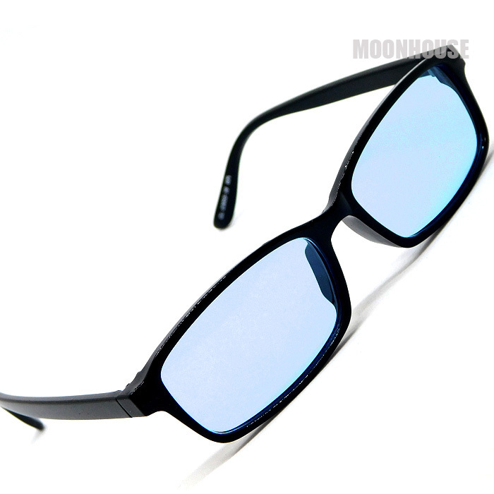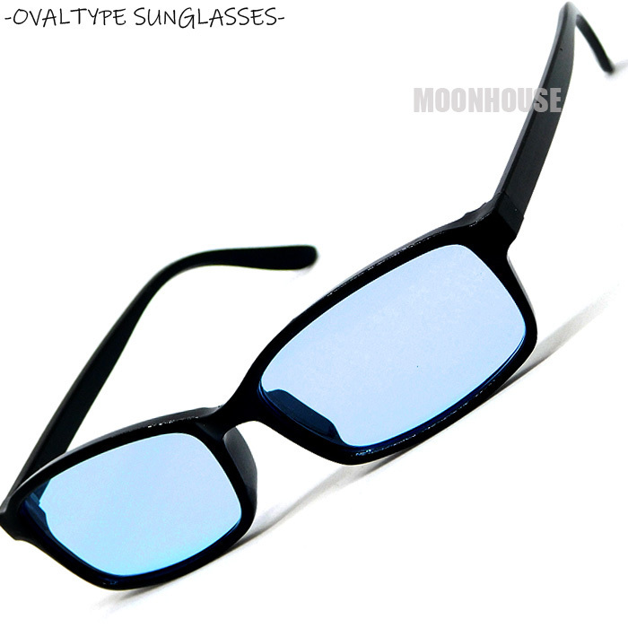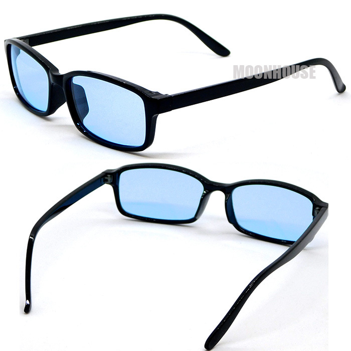 送料無料 スクエア サングラス メンズ レディース オーバル型 UVカット ライトブルーレンズ カラーレンズ 伊達眼鏡 伊達メガネ 新品★