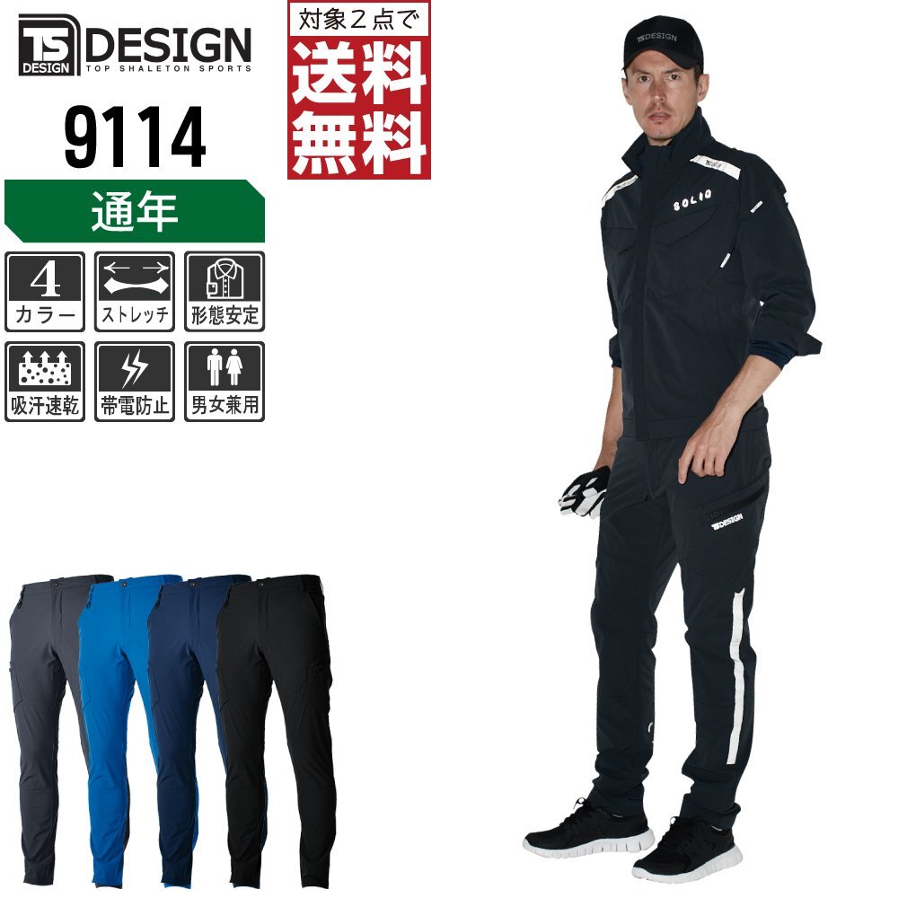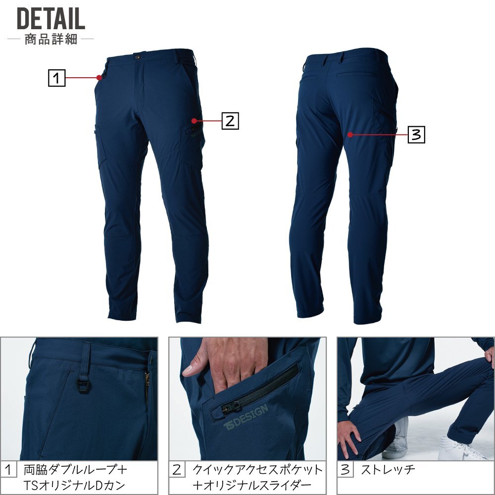 TSデザイン 通年 カーゴパンツ 4Dストレッチ 吸汗速乾 帯電防止 9114 色:ネイビー サイズ:M ★ 対象2点 送料無料 ★