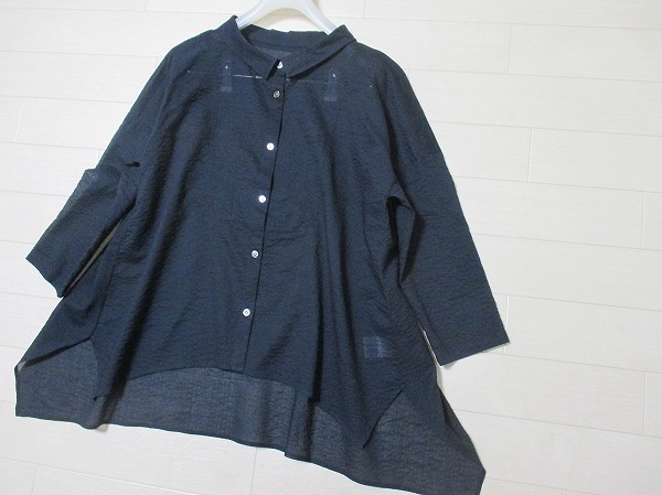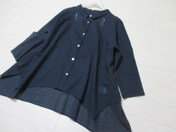 センソユニコ*Sensounico シアサッカー地フレアブラウスシャツ薄手 38