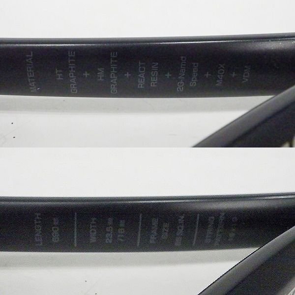 | ※フレームなどにスレ、キズ、汚れ等が若干ございます、比較的良好な状態です。 但し、グリップテープが巻かれていますので、グリップの状態に関しましてはわかりかねます。 ※ケース袋は梱包材程度にお考えください。 ※当店ではガット、グリップレザーの交換、張替えなどは行っておりません。また、張替え後の補償などには対応出来かねます。 | |||||||||||||||||