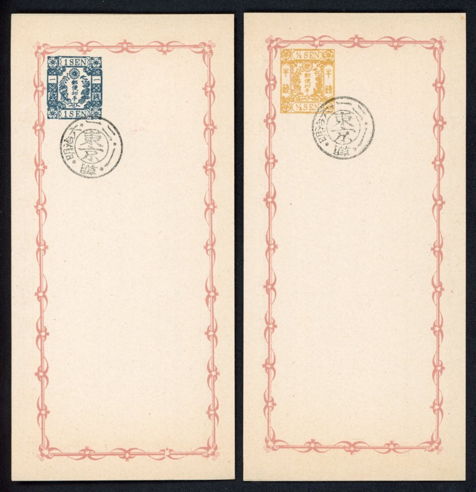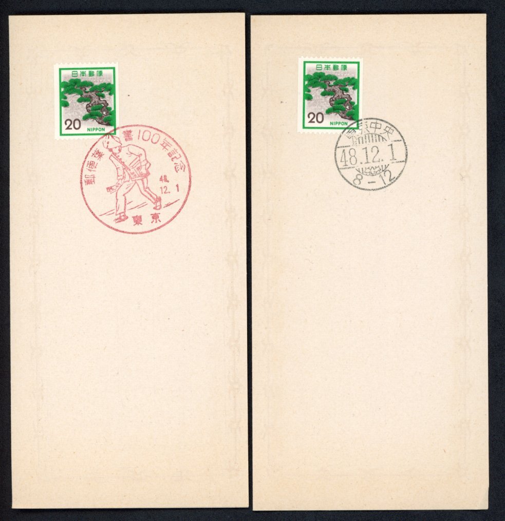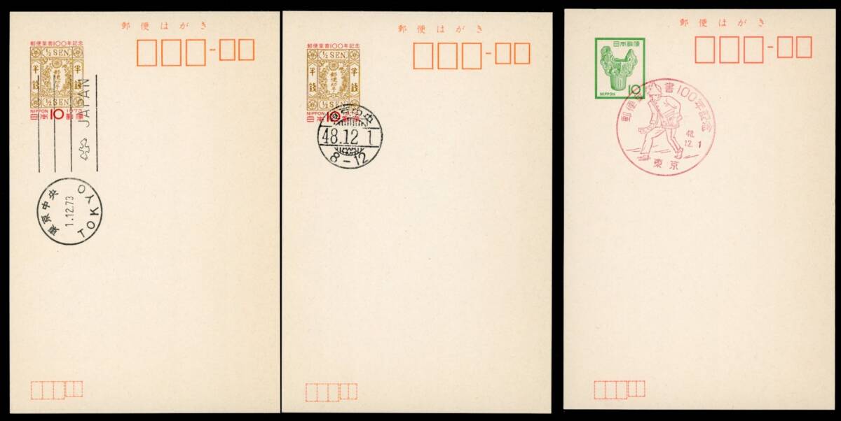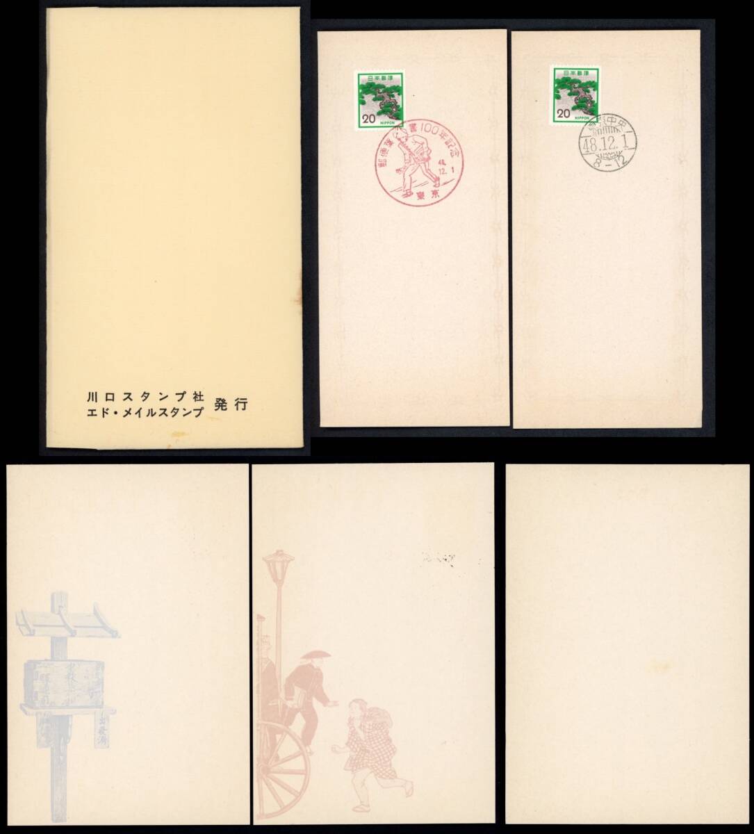 w14 模造品 葉書発行百年記念 二つ折はがき2枚、はがき3枚 明治6年12月1日-昭和48年12月1日 発行:川口スタンプ社/エド・メイルスタンプ