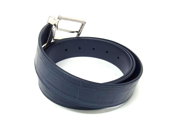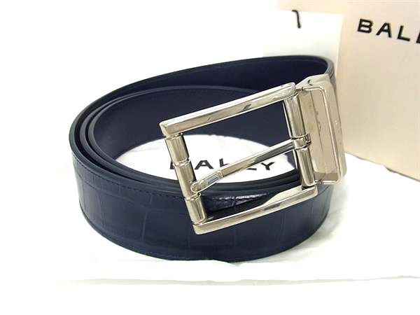 ■新品同様■ BALLY バリー クロコダイル型押しレザー ベルト 表記サイズ 120/48 メンズ レディース ブルー系 FV3727