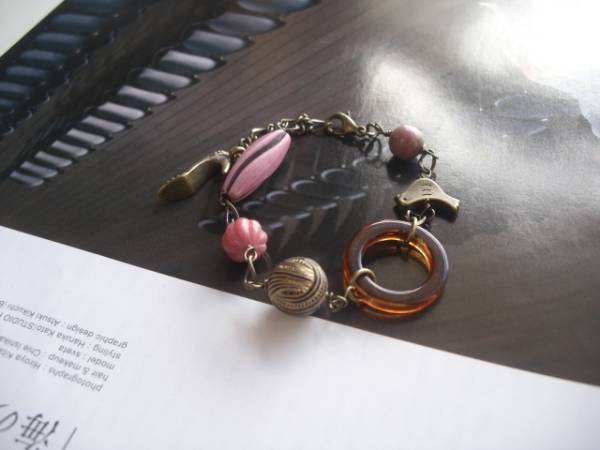 アンニュイな秋色・・シリーズです♪大人色のピンク・・シックなロードナイトのブレスレットです♪ダークピンクのロードナイトに樹脂ビーズや小鳥さんの チャームやアンティークビーズやデザインリングを合わせてシックな表情です♪ロードナイトは8ミリ、10ミリの丸玉やエスラインです♪樹脂ビーズは14ミ リから25ミリ位です♪長さは全長22センチ位で 調節自由です♪お揃いのネックレスも出品しています♪シンプルで飽きのこないいつまでも着けられるデザインを考えて作りまし た!ハンドメイドをご理解頂いてノークレーム、ノーリターンでお願いします