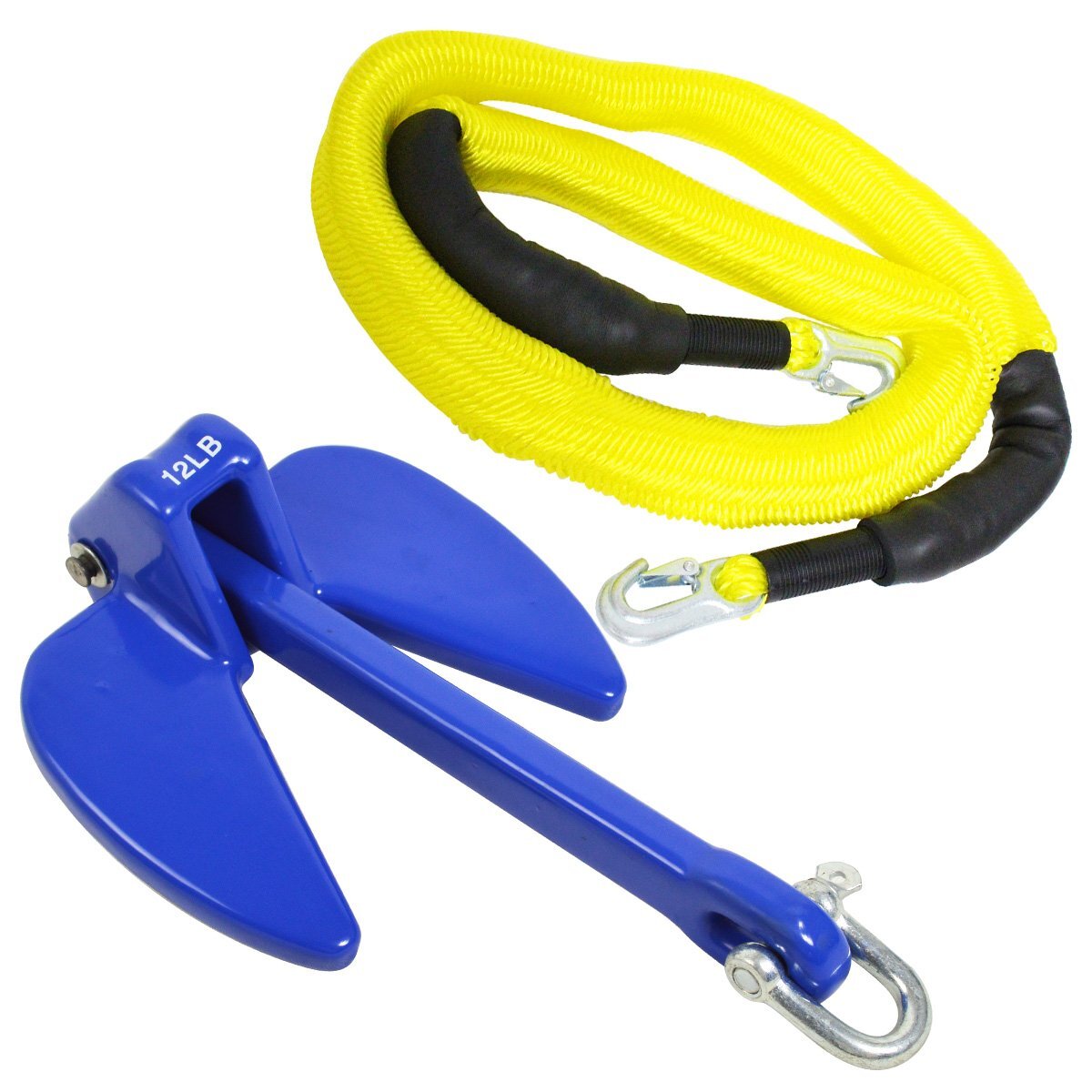『伸縮ロープ/アンカーセット』ジェットスキー 爪型 アンカー 12LBS 5.5kg 青 6M フロート のびのび アンカー ロープ 黄色