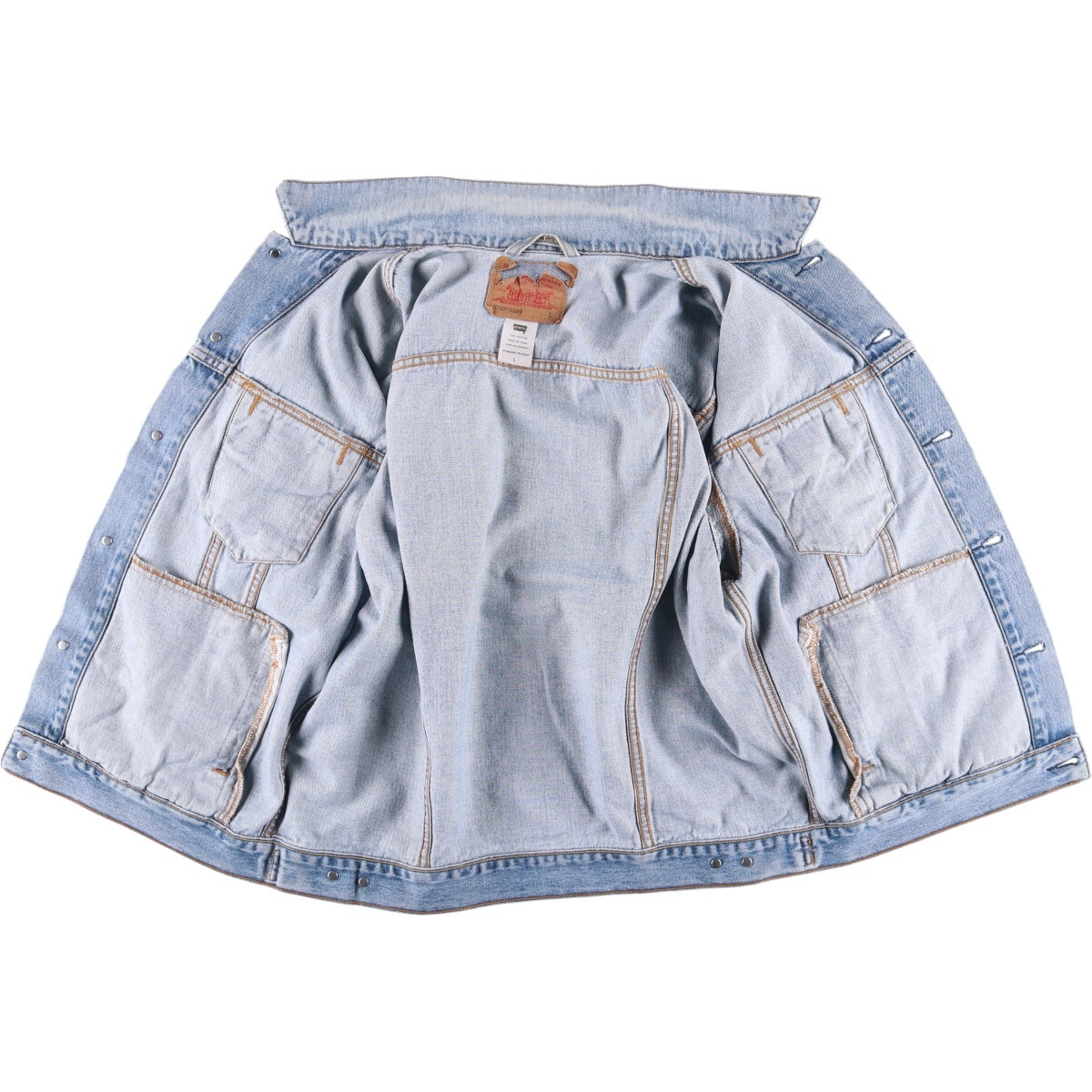 | 表記サイズ: L 着丈: 65cm 身幅: 61cm 肩幅: 55cm 袖丈: 63cm ![]() | ![]() ランク:C USEDデニムですので使用感、擦れ、色落ちなどございますが、まだまだご愛用していただけます。 古着という事をご理解の上ご注文よろしくお願いします。 【状態追記】 ●前、左襟・両袖内に汚れ 左袖・中央襟・左胸部・左裾・両腹部内に擦れ ●後、両袖・両肩・襟内・両袖内に汚れ 両袖に擦れ ●内側、襟ぐり・左裾に汚れ |