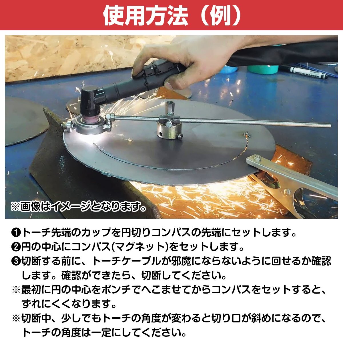 商 品 説 明トーチを先端に装着して、コンパスのように効率よく円の切断・穴あけ加工が行えます。