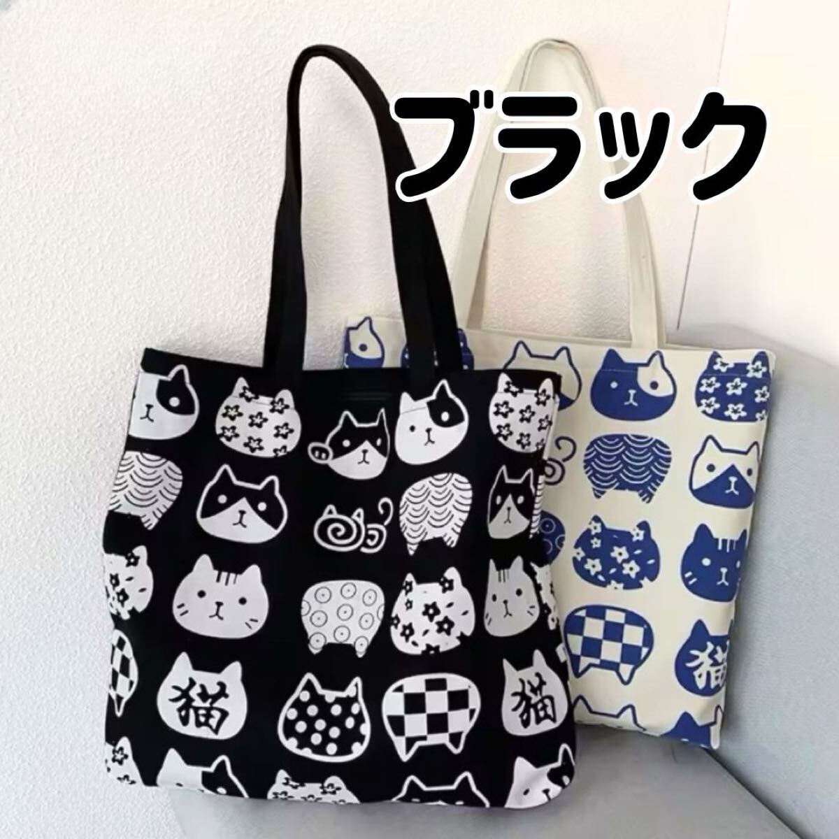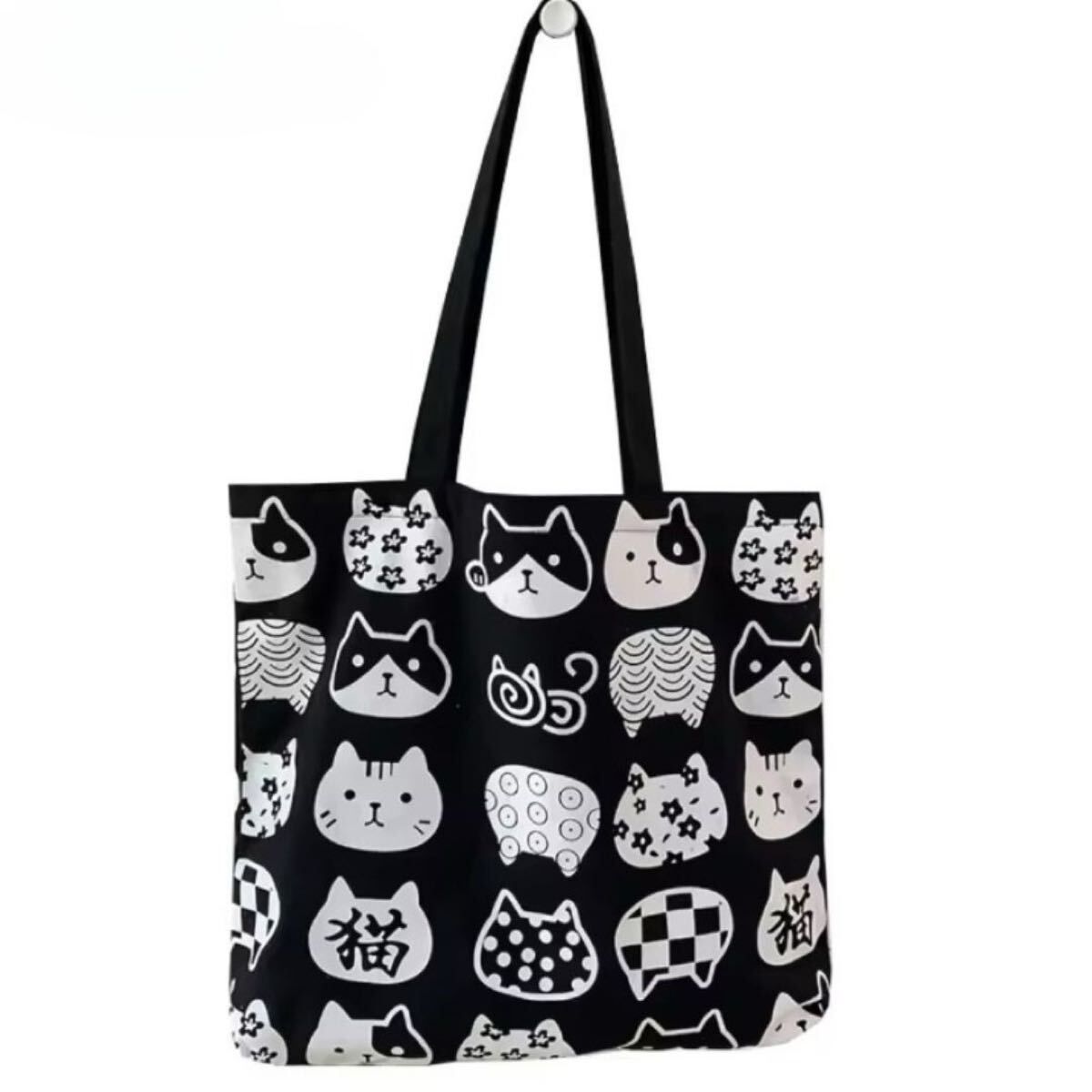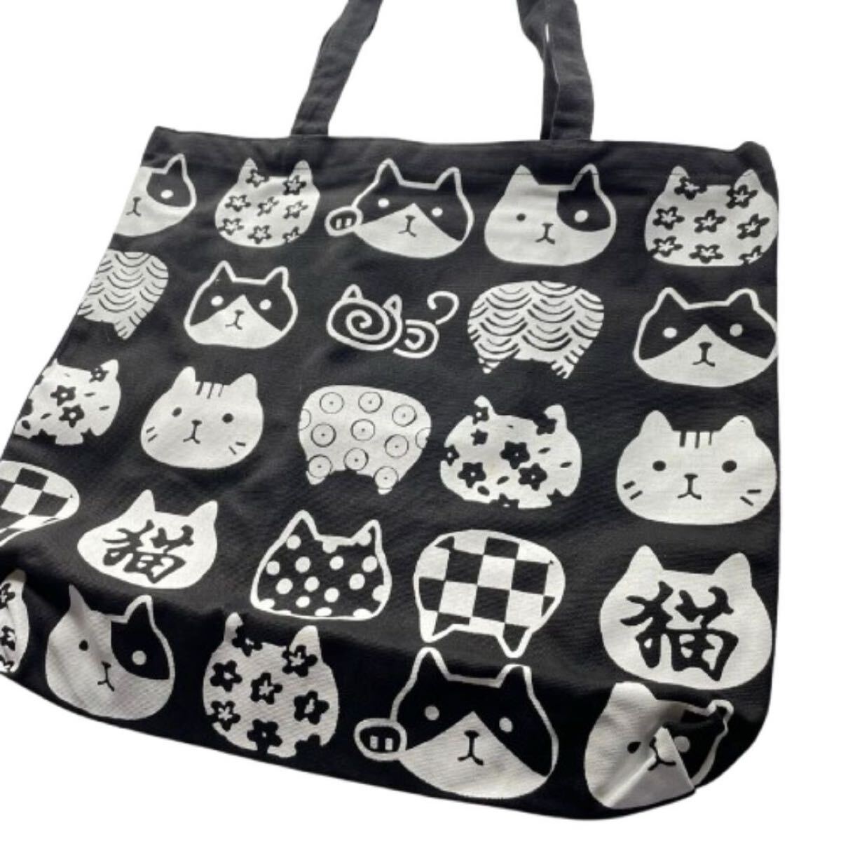 猫好きにはたまらない、かわいい猫柄がデザインされたトートバッグです。