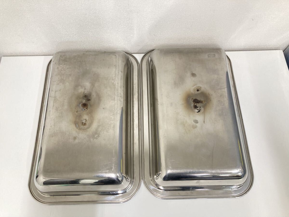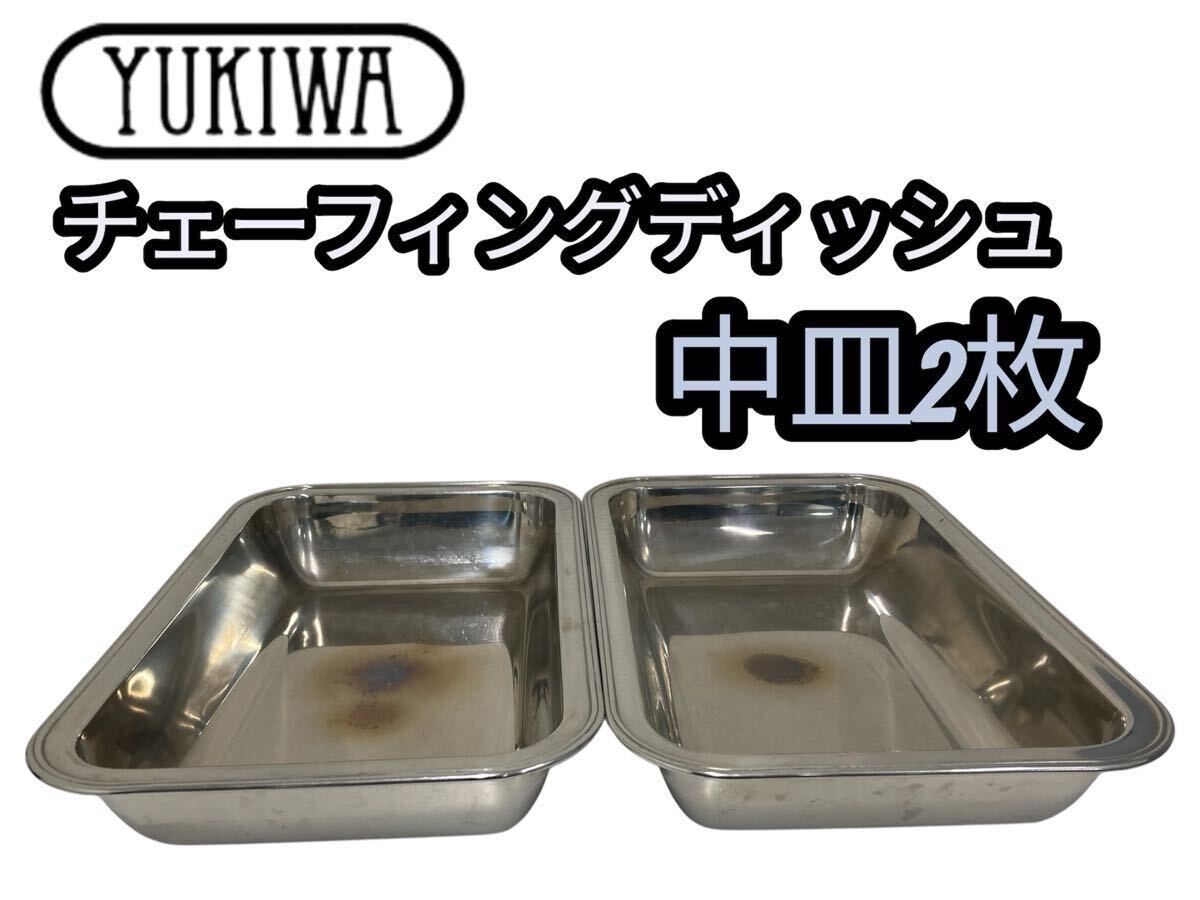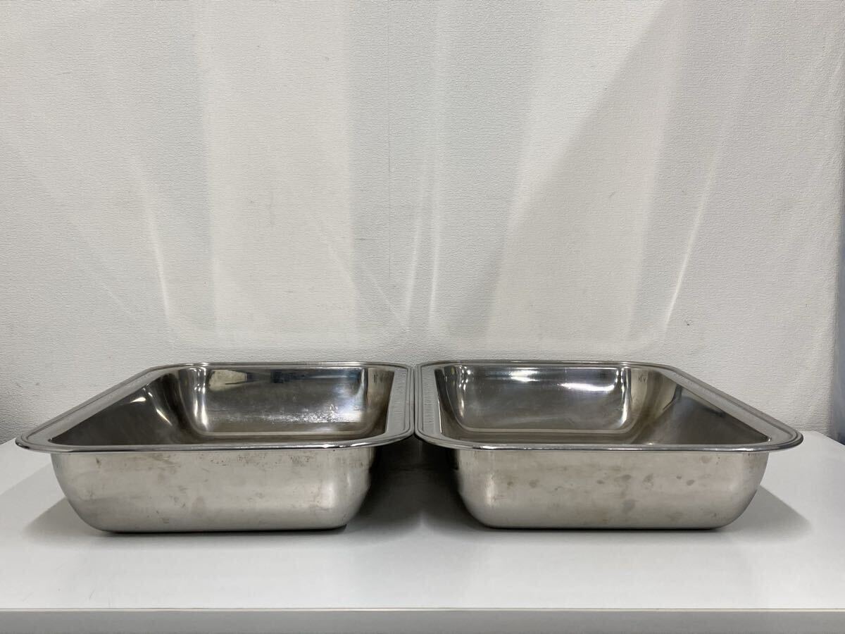 近B)YUKIWA チェーフィングディッシュ中皿2枚セット 外寸W50.5×D32×H8.5cm ステンレス ホテルパン 業務用 レストラン ビュッフェ251202C4