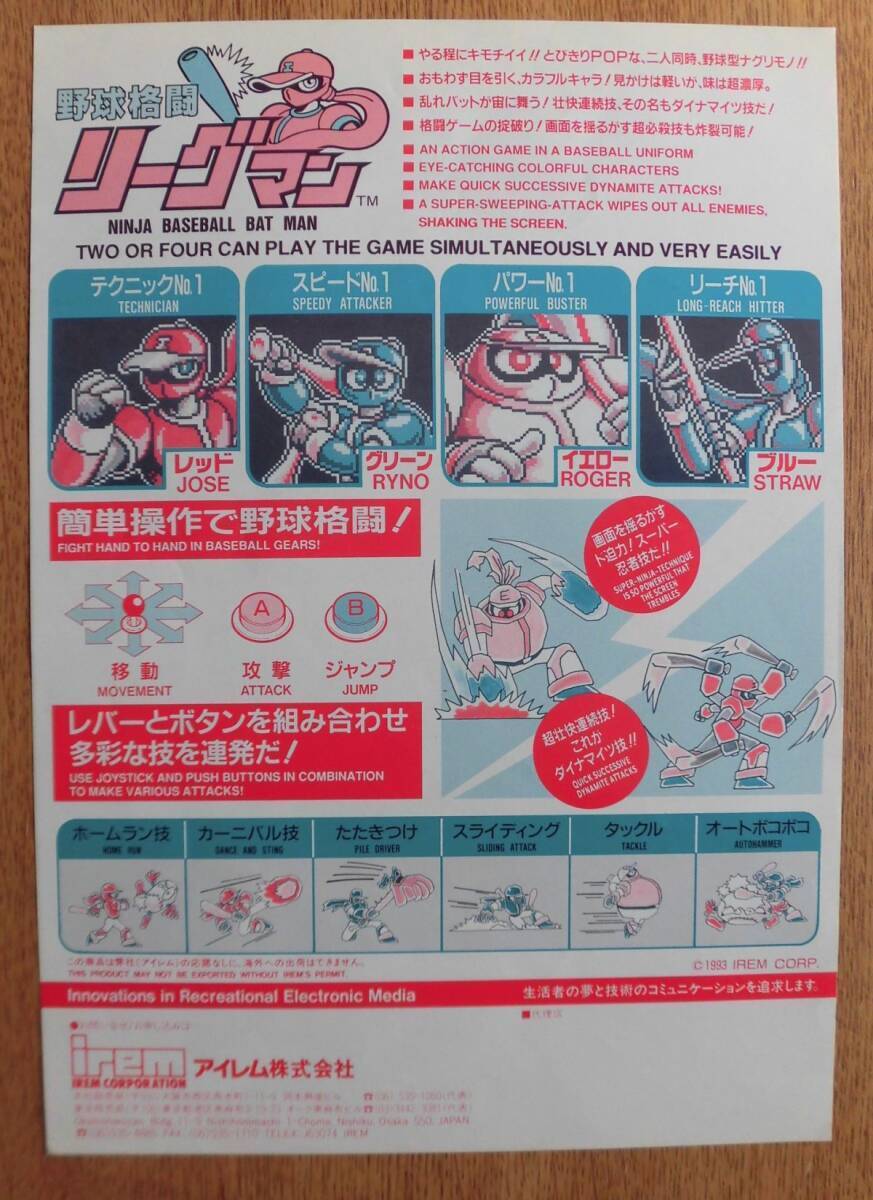 1993年 アイレム 【 野球格闘 リーグマン( Ninja Baseball Bat Man)】 A4のカタログ1枚・・