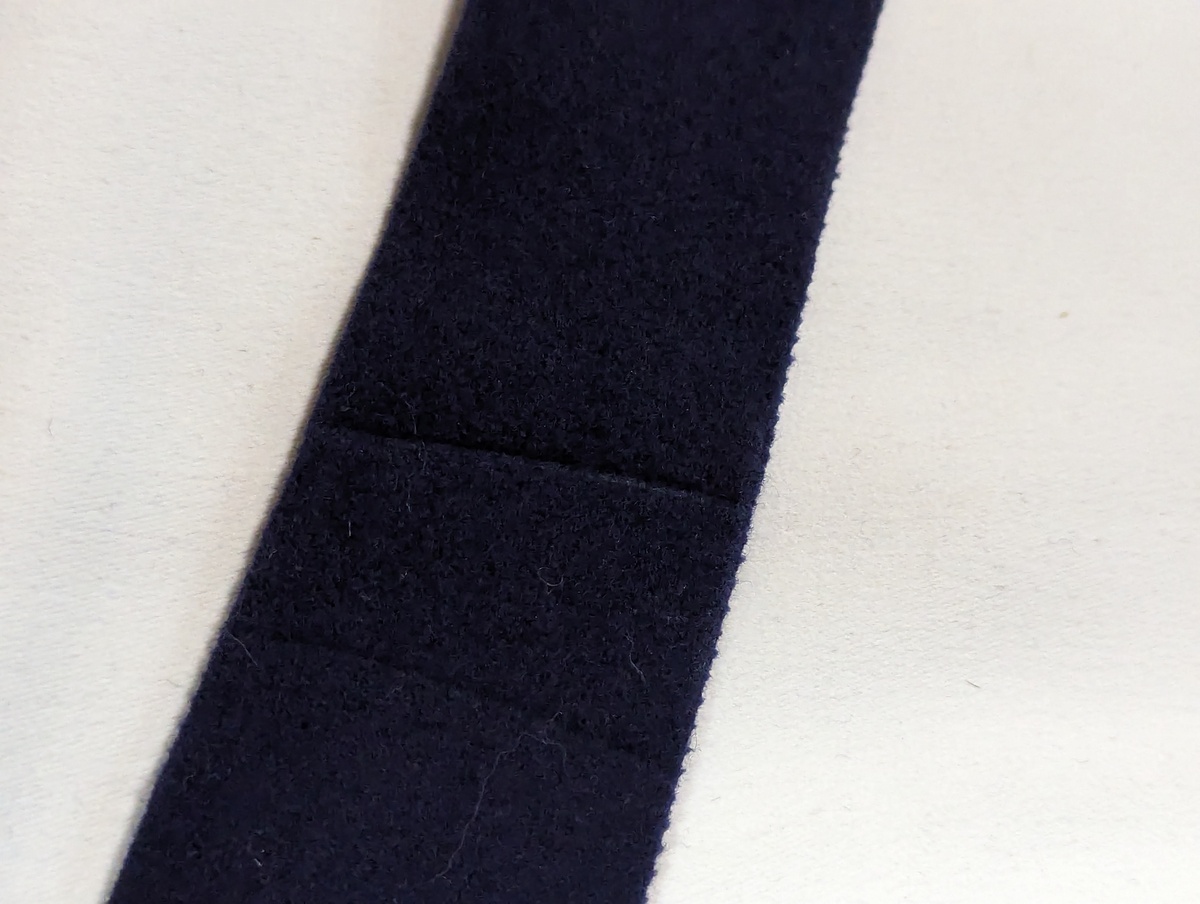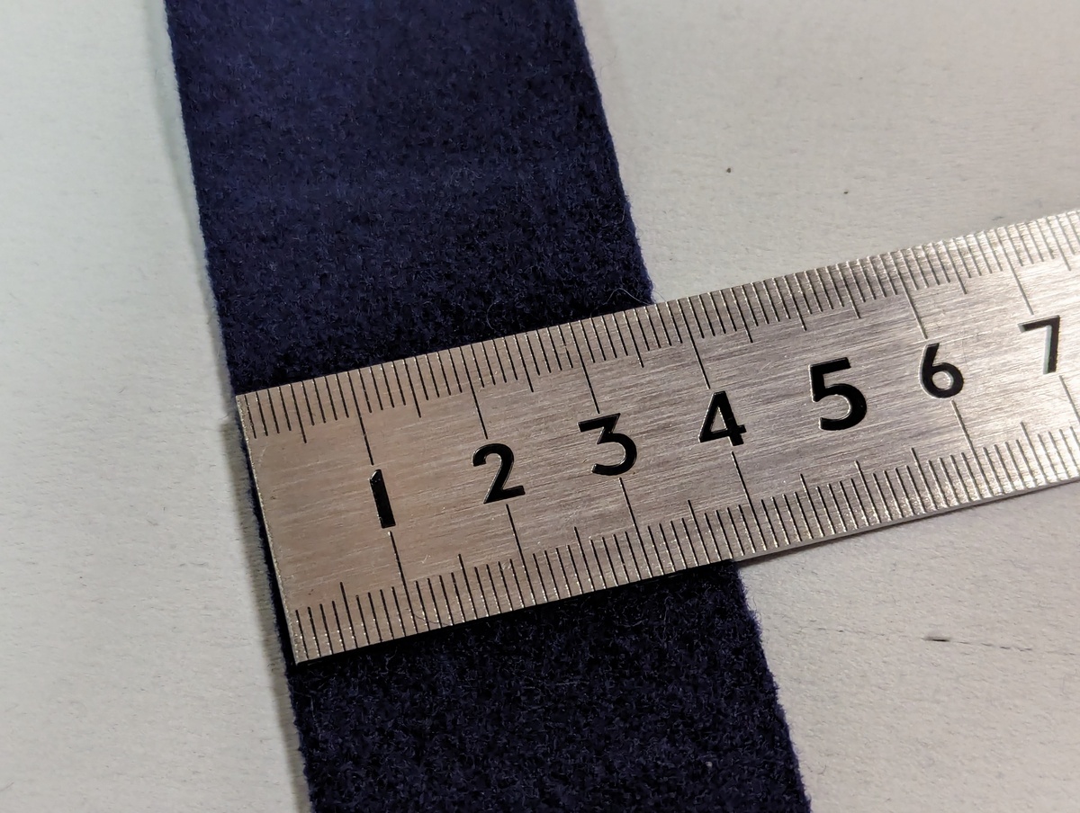 汎用性の高いダークブルーのフェルトです。ネイビーに比べて重苦しくないのでオールシーズン向きです。フェルトのベルトが長い場合は先端をカットするのが正式な調整方法です。フェルトはほつれない機会的性質があるので切りっぱなしでOKです。
