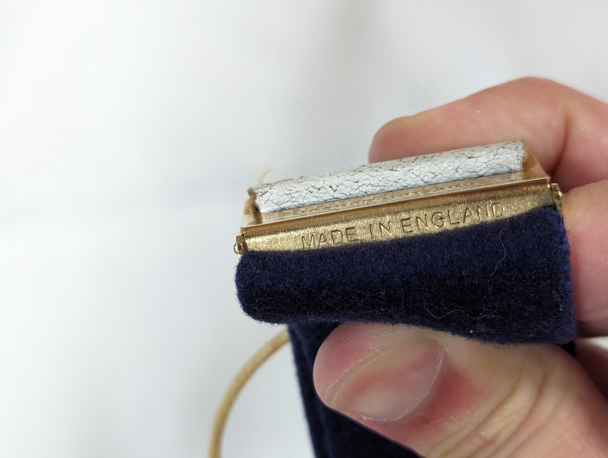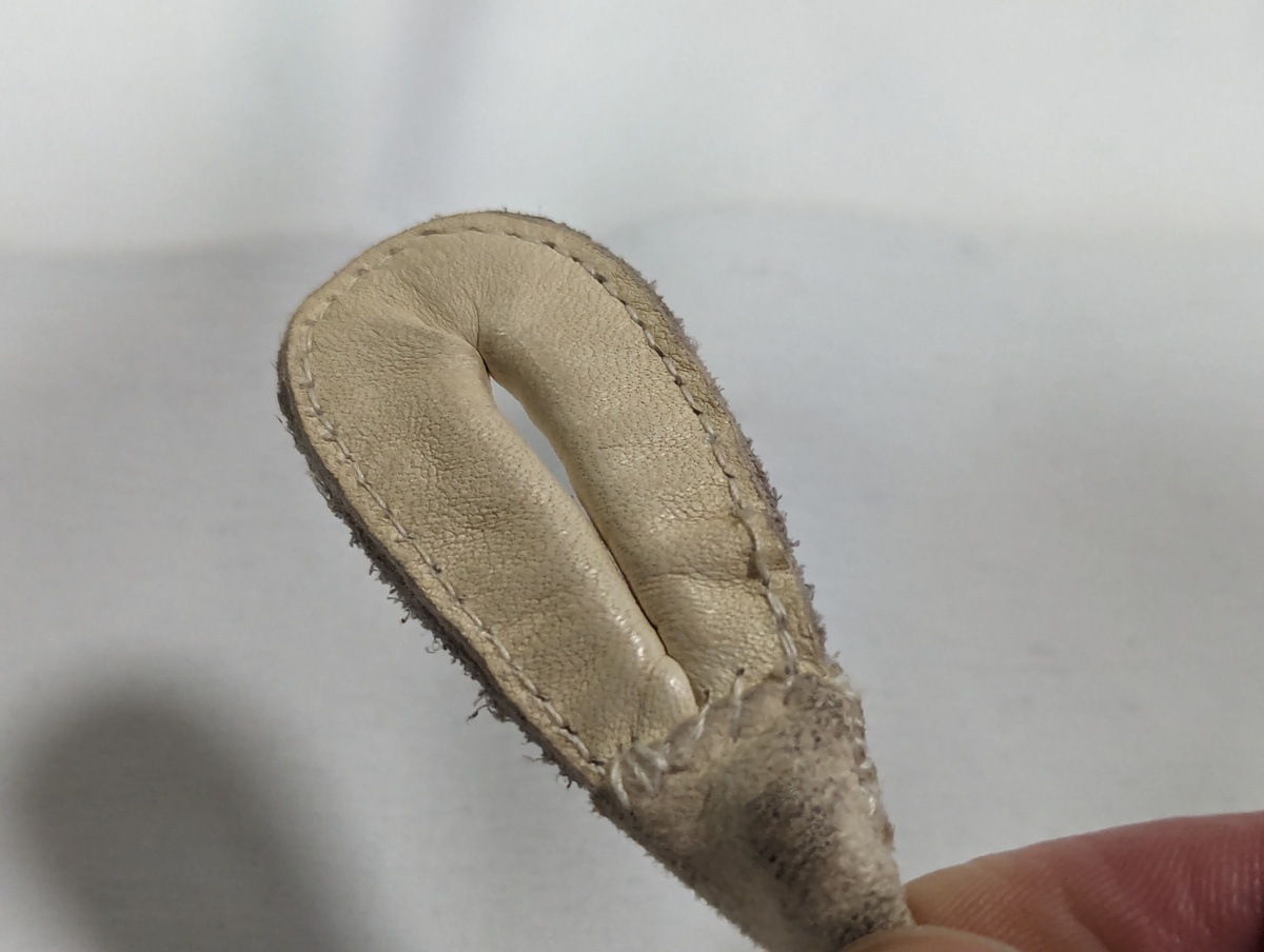 今では製造されていない、希少なガット(動物の腸、クジラの髭という説もあり)がタブのループ部分に使われた超人気モデルです。
