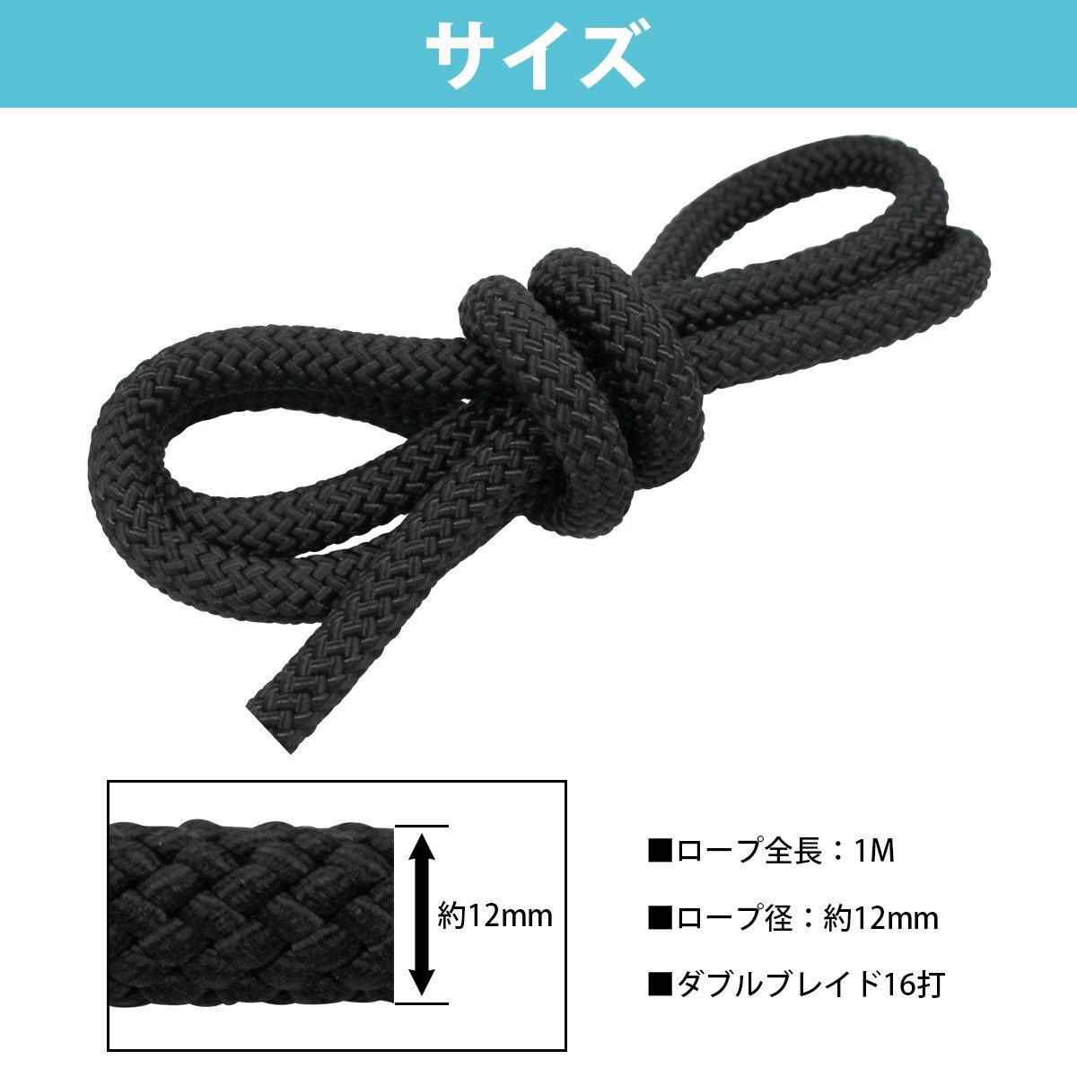 1m ~ 切り売り 16打 12mm 係留ロープ フェンダーロープ ダブルブレイド 黒/ブラック マリンロープ 船 係船 ロープ 12ミリ