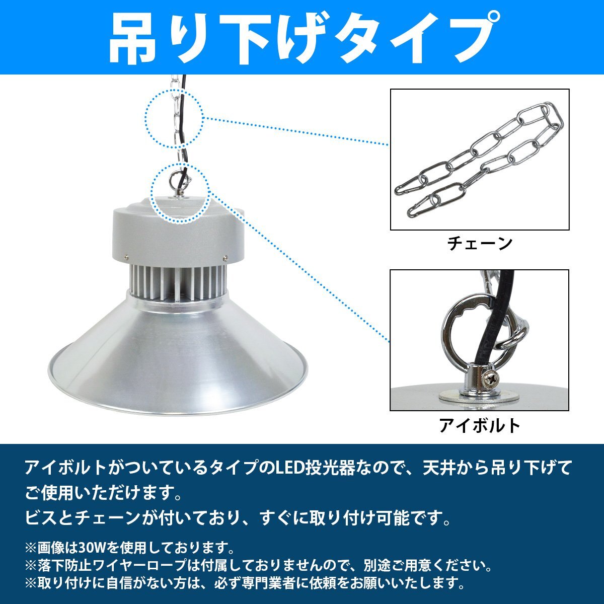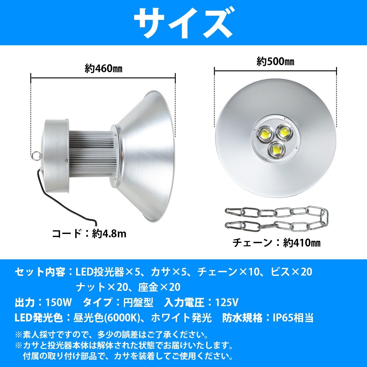 『吊り下げ照明』 水銀灯タイプ LEDだから超省エネ! 投光器 150W AC100V 5m 5個セット ホワイト 白発光 作業灯 倉庫 駐車場 照明