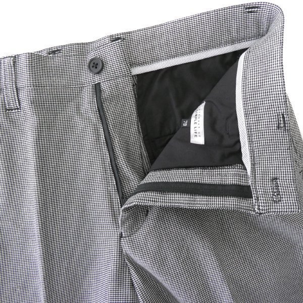 ウールサキソニーのような質感に仕上げたハウンドトゥース柄のスラックス。 非常に良くストレッチが効いているので、快適な穿き心地です。 生地表面は起毛感のある素材を用いており、さらに内側はより起毛させた素材にすることで保温性を高めております。 ノータック・テーパードのすっきりとしたシルエットにシンプルなデザインで大人のビジネスシーンにマストな一本です。 【デザイン】 ・テーパードシルエット ・ジッパーフライ ・ノータック |