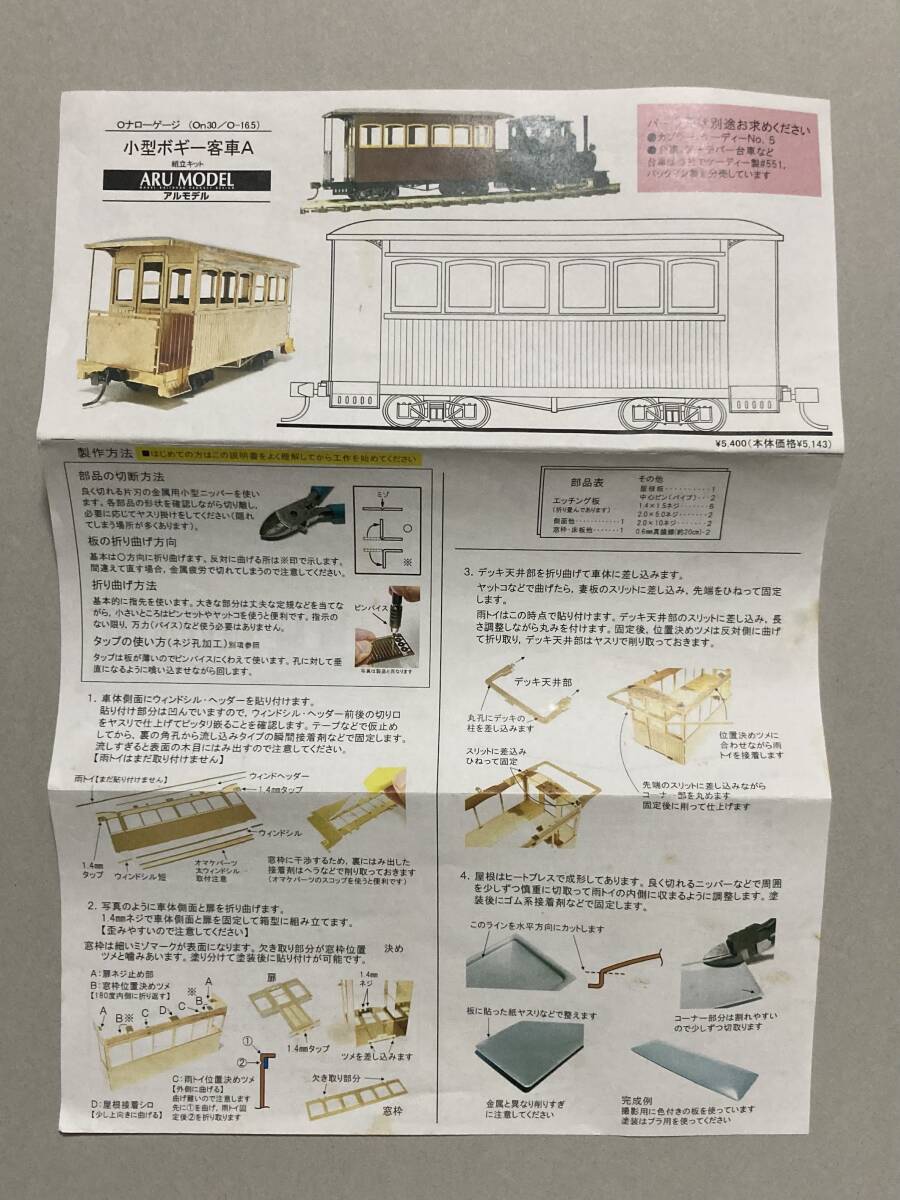 アルモデル Oナロー 16.5mmゲージ 小型ボギー客車A組立キット2両分 仕掛品