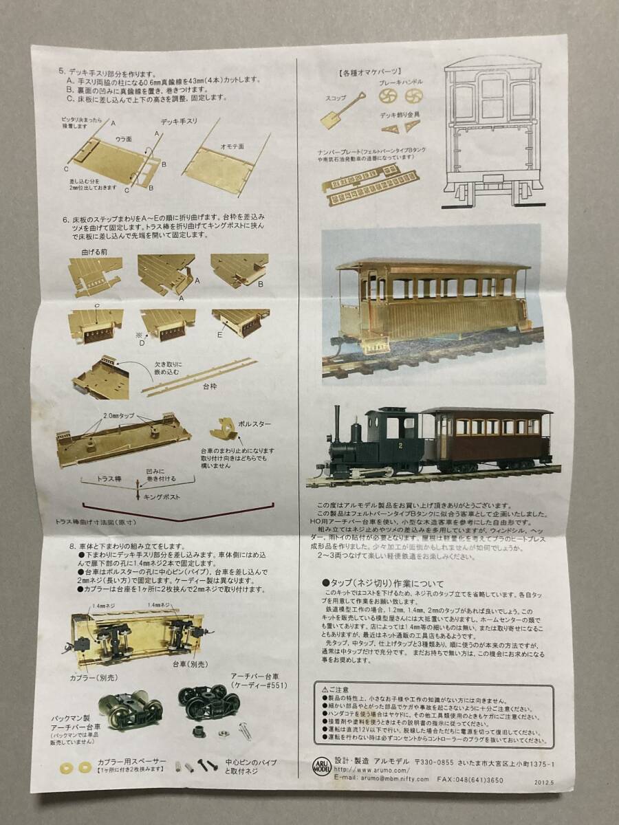 アルモデル Oナロー 16.5mmゲージ 小型ボギー客車A組立キット2両分 仕掛品 です。