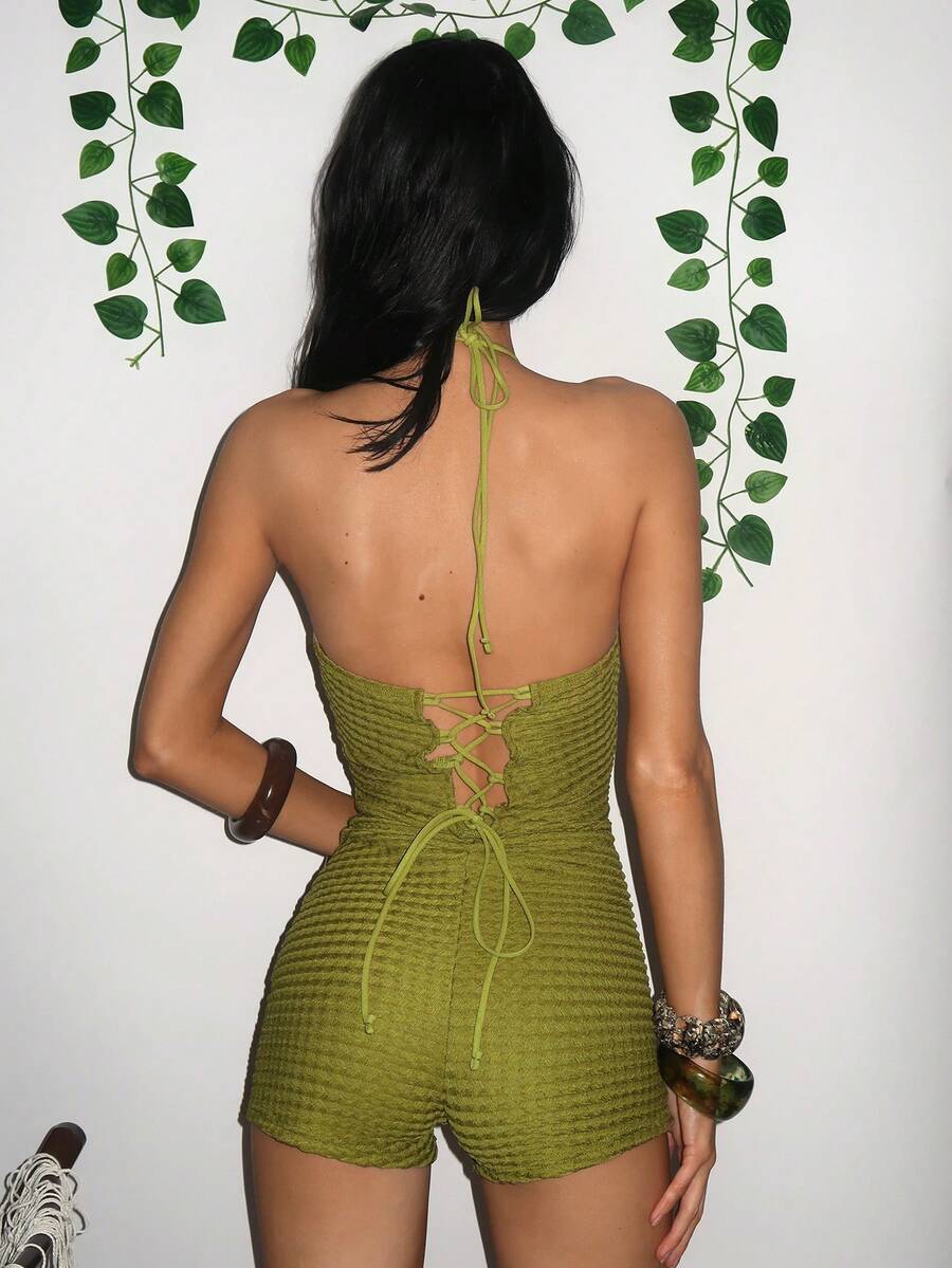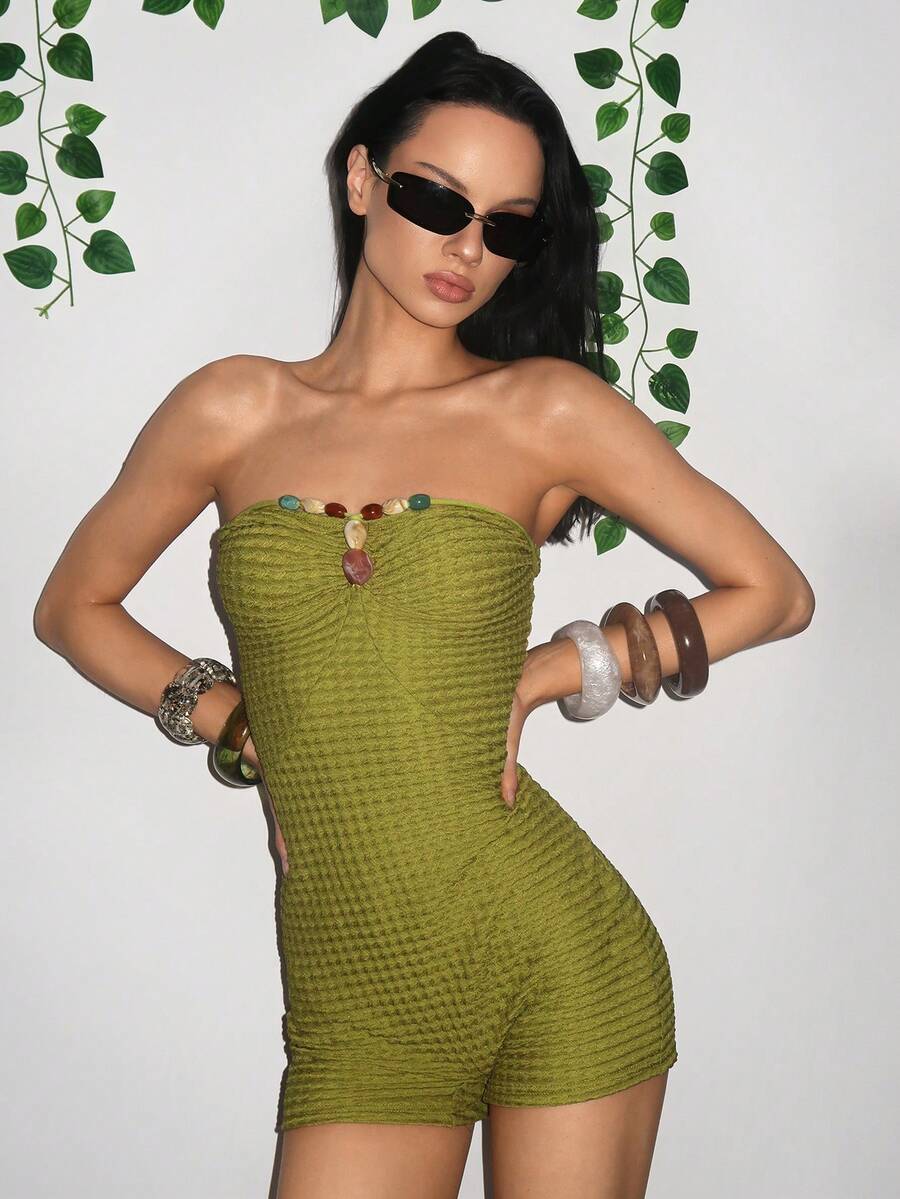 | 商品名 | ボディスーツ 女性用タイトテクスチャ生地ビーズホルターロンパース |