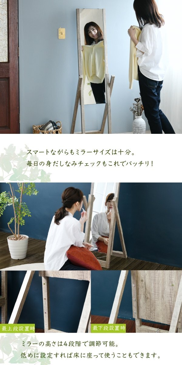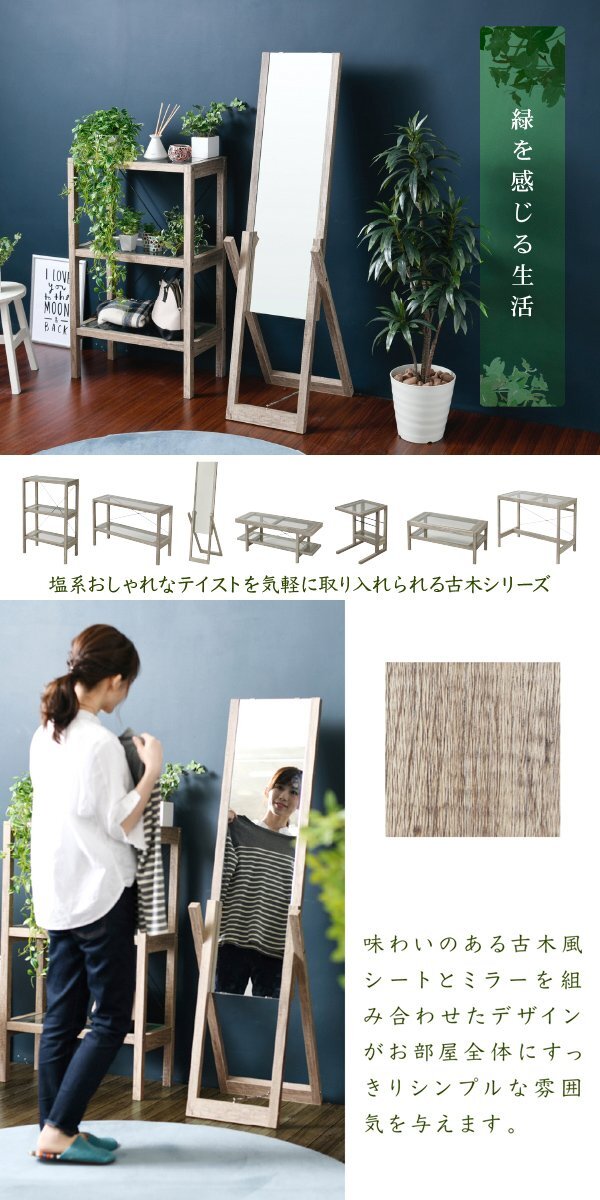 ※現在ご覧の商品ページはナチュラルのご購入ページとなります。 ヤフオクの仕様上単一ページに複数バリエーションを掲載することができませんので、他バリエーションが希望の場合は別ページでご購入お願い致します。 味わいのある古木風シートを採用したデザインが、お部屋全体にすっきりとした印象を与えるスタンドミラー ※撮影時の小物は付属しません。 配達業者を指定いただくことはできません。 沖縄・離島への配送は別途配送料が必要です。 ※別途送料が発生する場合は後ほどご連絡させていただきます。 タイミングによっては在庫切れの場合があります。