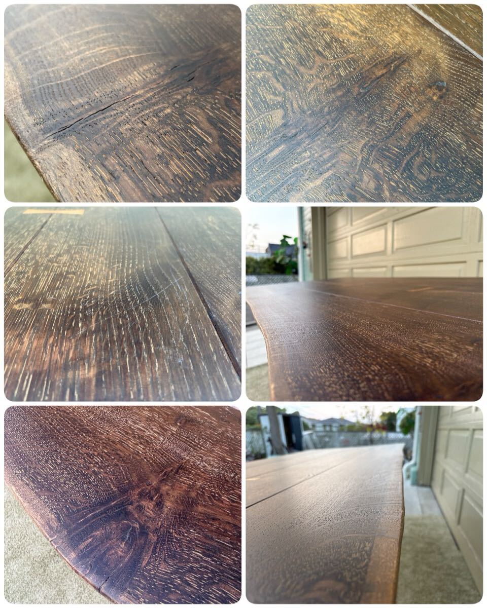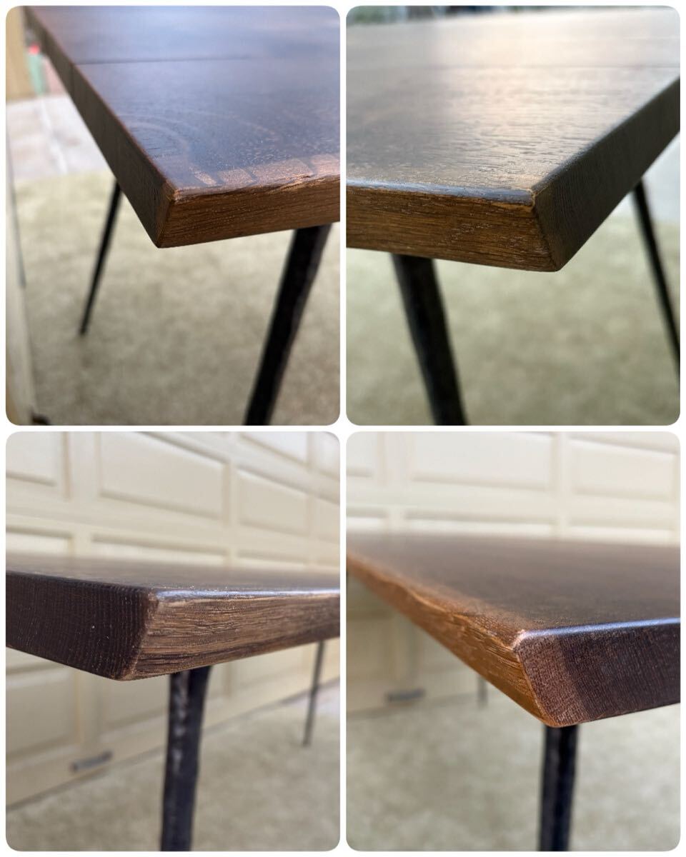 全体的にとても綺麗で、展示品のような美品コンディションとなります。天板には一箇所小傷はありますが、使用に支障のあるダメージはありません。アイアンレッグも歪みなくまっすぐで、ガタつきもありません。