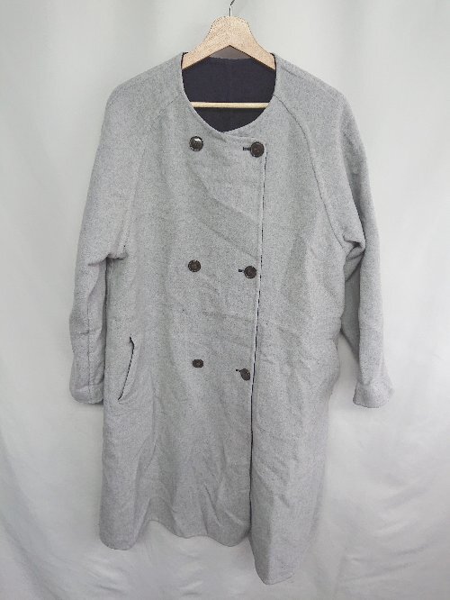■ ⊇ SHIPS any ダブルボタン 長袖 ノーカラーコート サイズ表記なし ネイビー レディース E