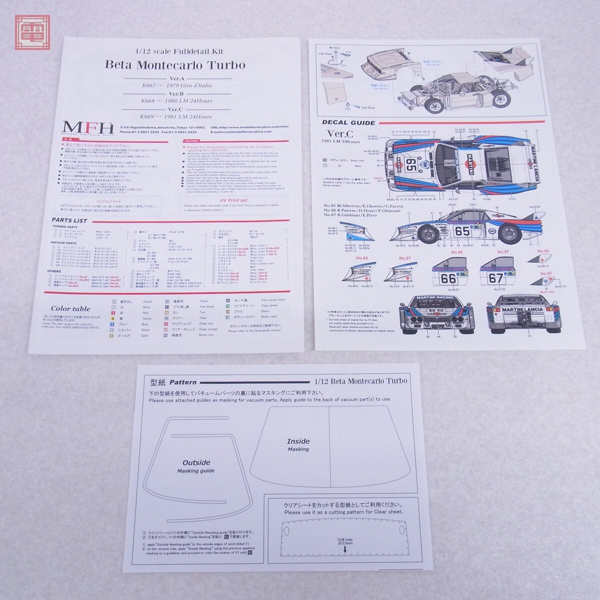 未組立 モデルファクトリーヒロ 1/12 ベータ モンテカルロ ターボ Ver.C 1981 LM #65/#66/#67 MFH ■外箱にスレ、キズ、イタミ、汚れ、ヤケ、変色、凹みがあります。 ■内袋は未開封です。 ■内袋の一部は箱に固定されています。 ■説明書にイタミ、ヤケがあります。 ■パーツの詳細な確認は行っておりません。過不足等の可能性があります。 ■写真のものが全てです。付属物の有無や状態については写真からご判断ください。 ■付属物については細かいチェックはしておりませんので、万が一、欠品があったり余計な物が入っていたとしてもご了承ください。 ■商品到着後、当店の保証期間中は、商品及び箱や取説、付属品などを1つでも廃棄や破損をしないようにお願い致します。廃棄や破損をした場合、商品に問題があった場合でも対応や返金などの対処ができなくなります。 ■商品によりますが、発売されてから10年以上経過している中古品である事をご理解頂いた上でご入札をお願い致します。なお、新品や美品、また特記事項がある場合は別途明記します。 | |||